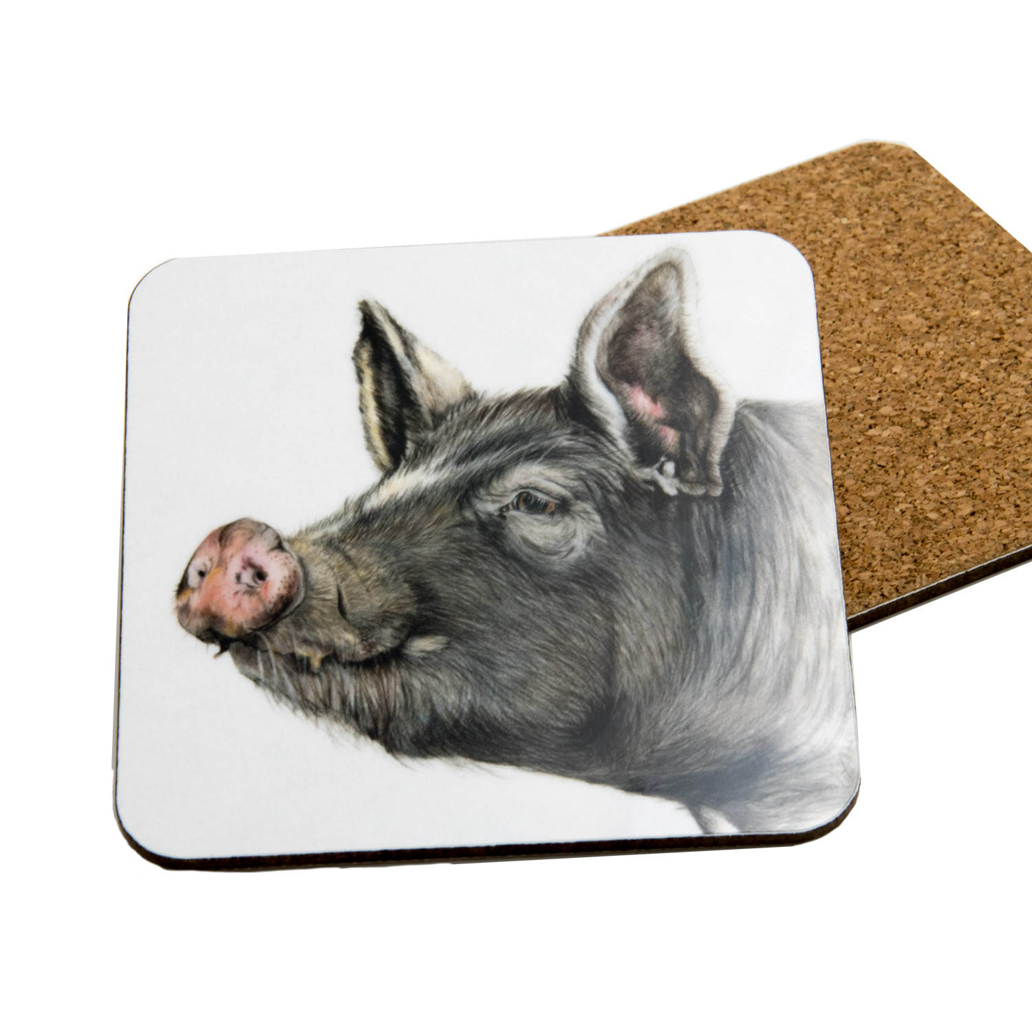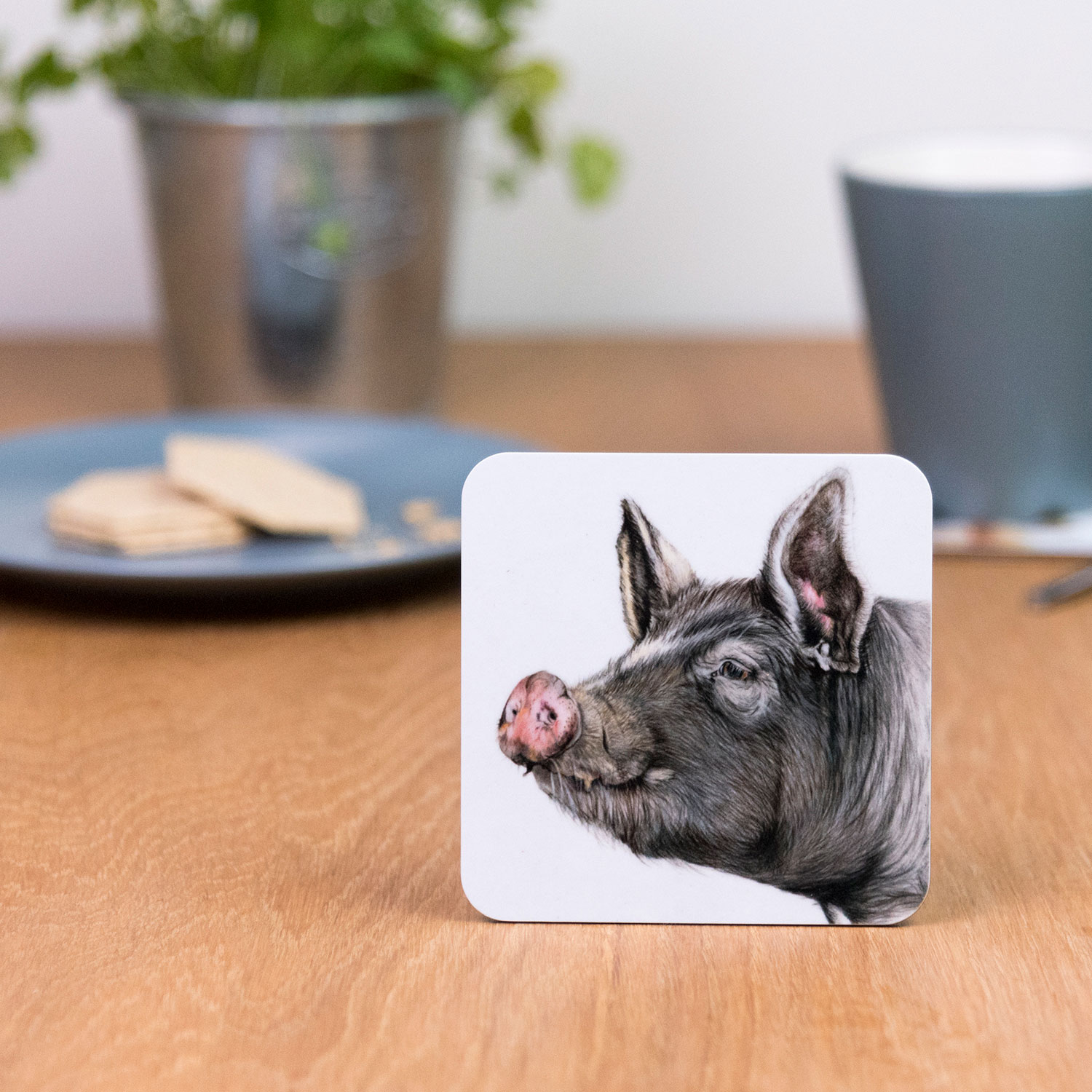 Clementine the rare breed Berkshire pig is featured on this coaster. These coasters are great for everyday use and add a little country feel to your home.
