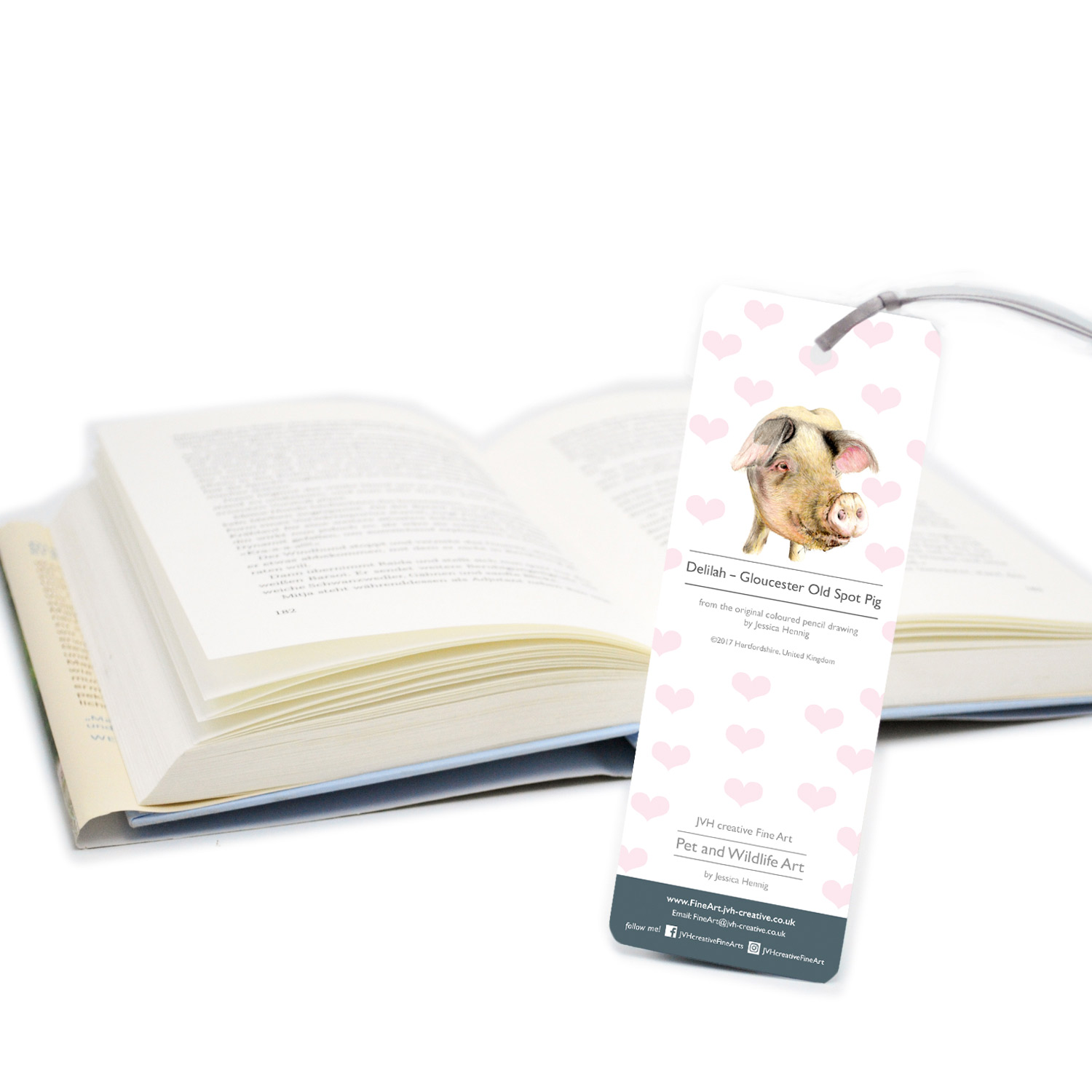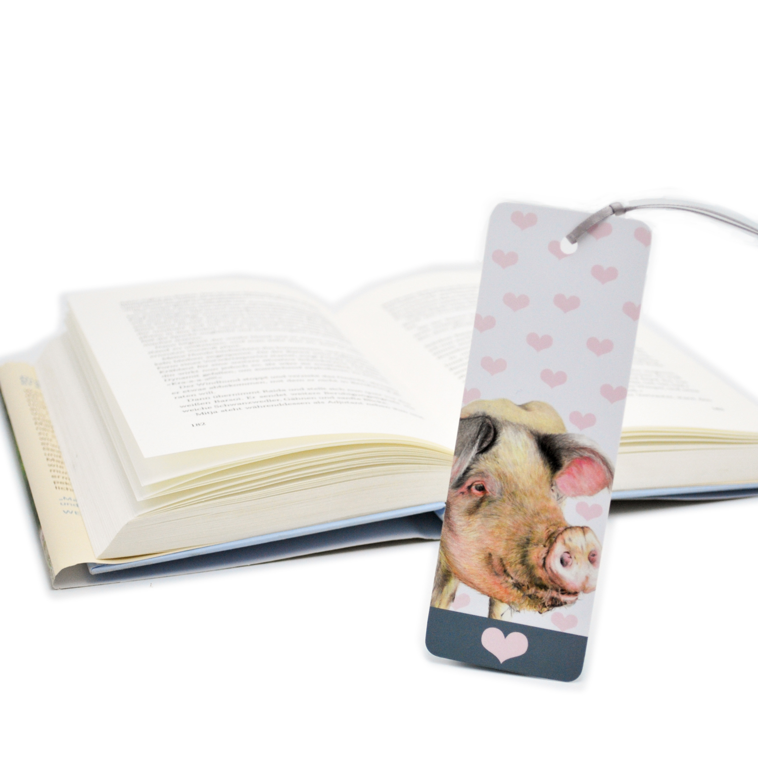 We’ve added some pale pink hearts in the background to make her even more irresistible. The bookmark is printed on both sides and is finished with a glossy coating.
