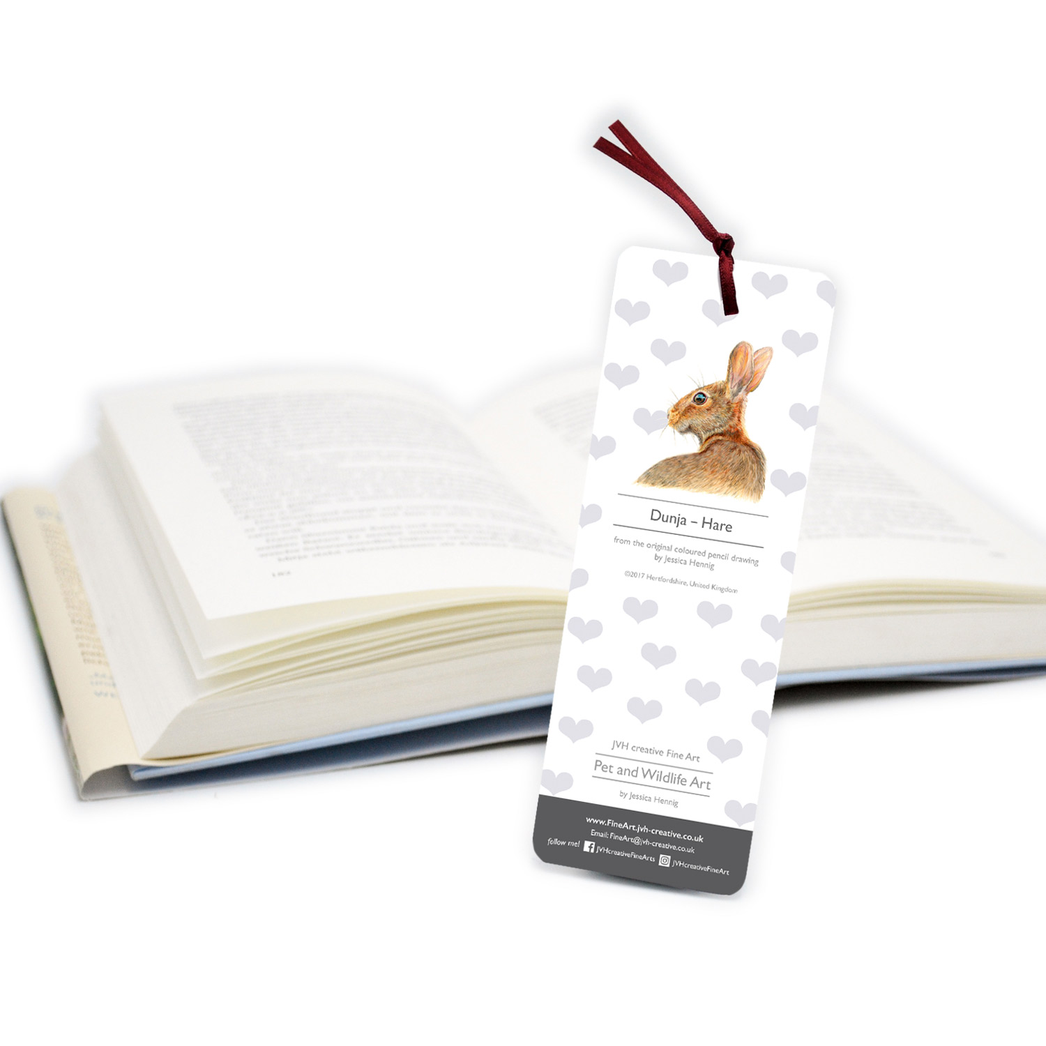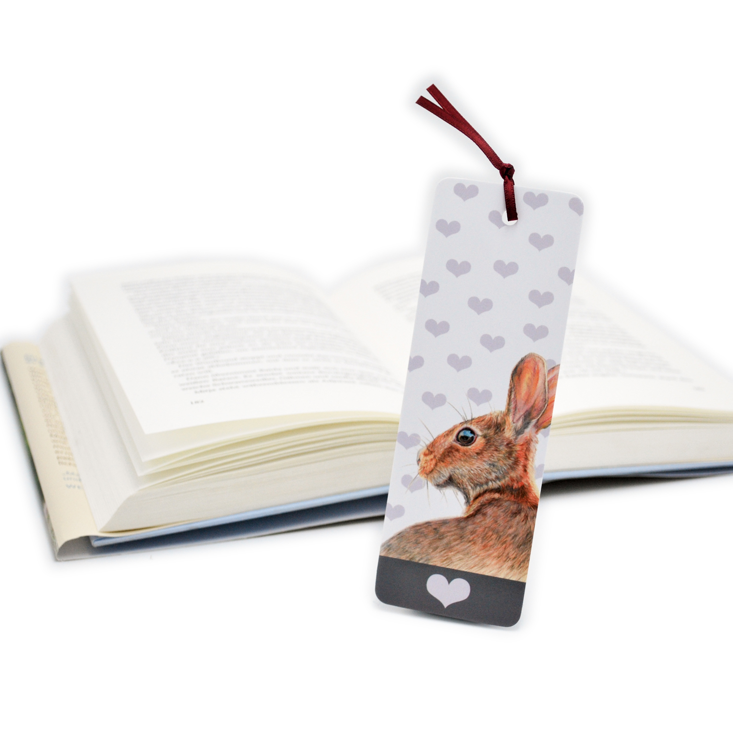 The hare bookmark is printed on both sides and has a glossy coat finish