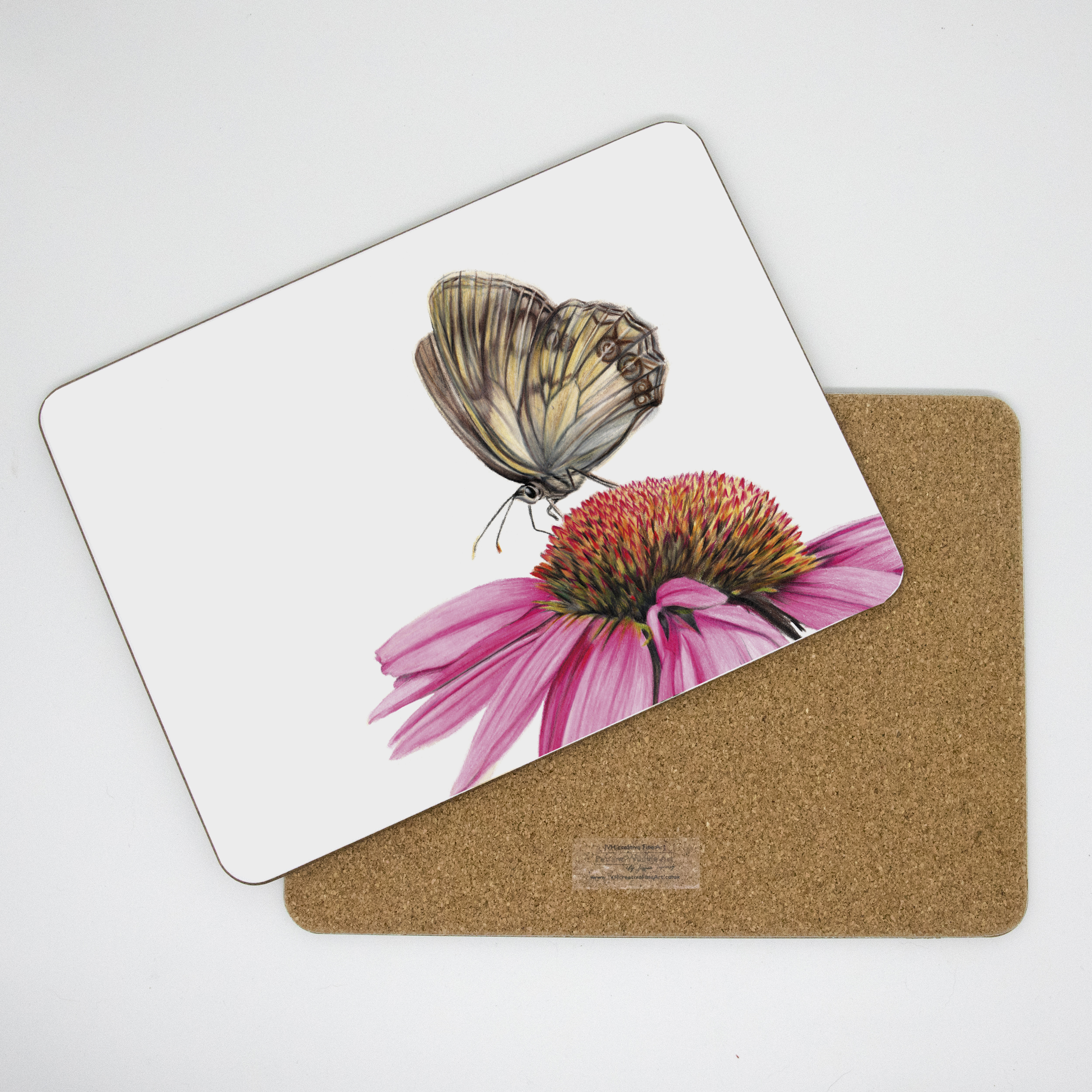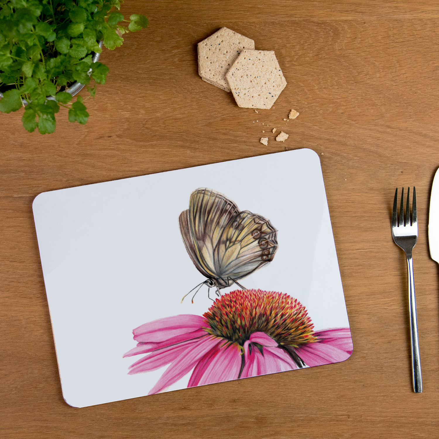 Sunseeker the Butterfly on Echinacea is featured on these Placemats. These Placemats not only help to protect your dinner table form heat damage, spills or scratches, but also add some colour to your home. – A great gift idea for birthdays or the next housewarming you are invited to.