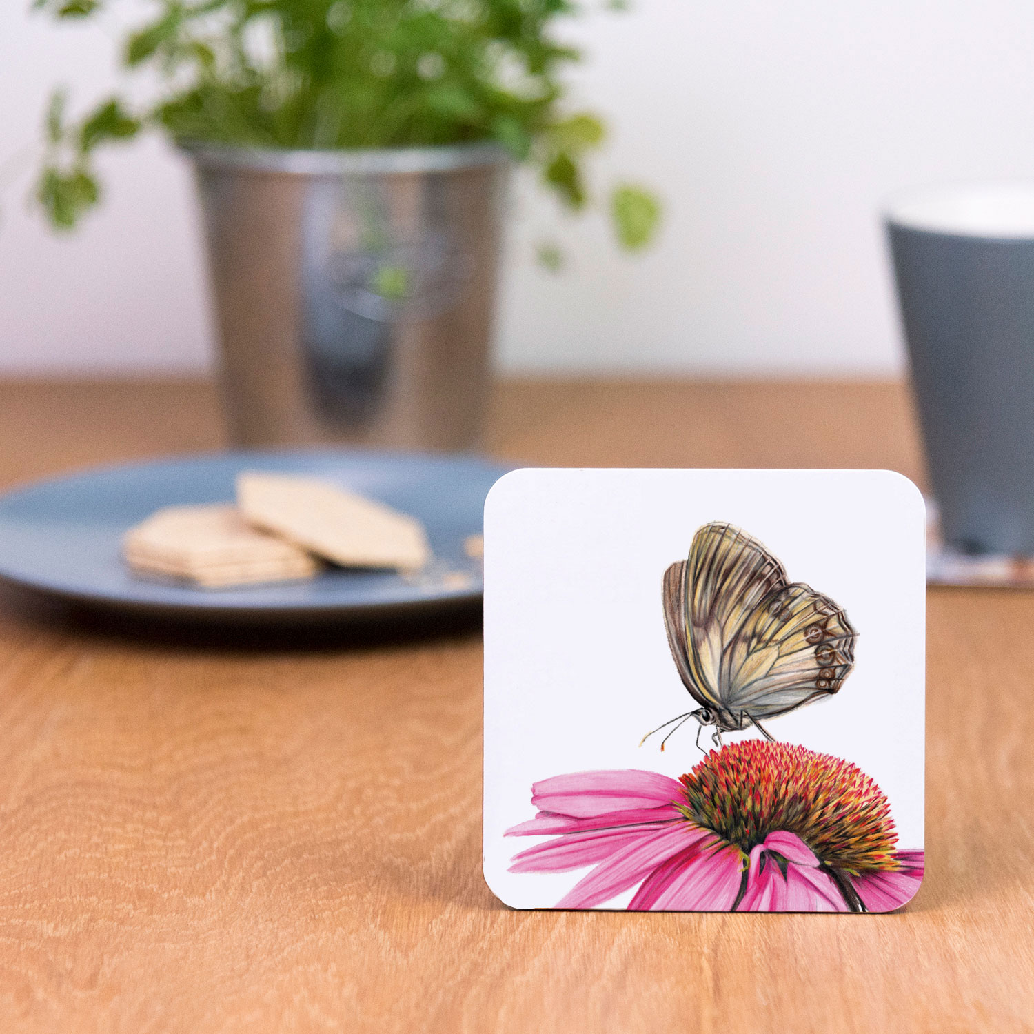 Sunseeker, the Butterfly on Echinacea drawing, is part of the wildlife, floral series and featured on these coasters. The coaster make a lovely gift and will add some colour to your home.