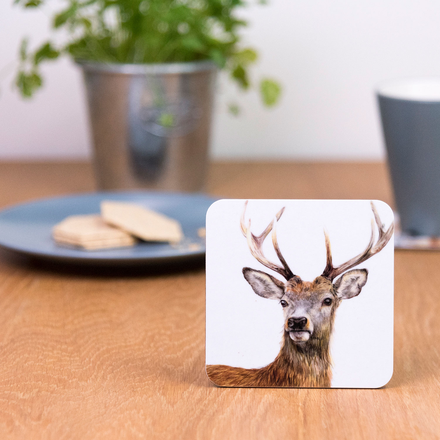 Our proud Derek the Stag ist featured on these coasters. The coaster are great for everyday use and add a little country feel to your home.