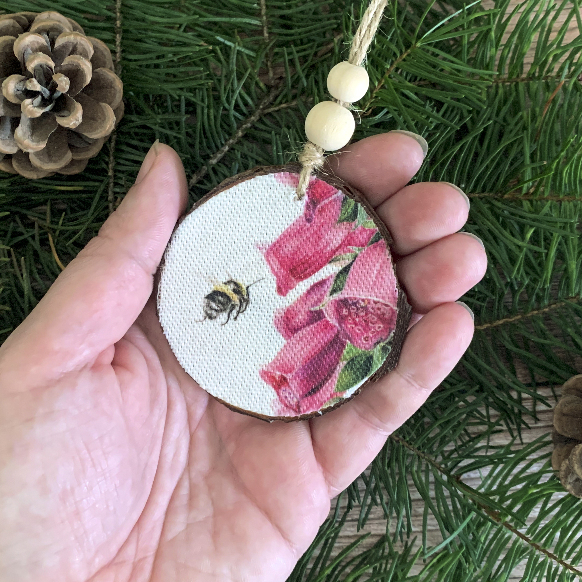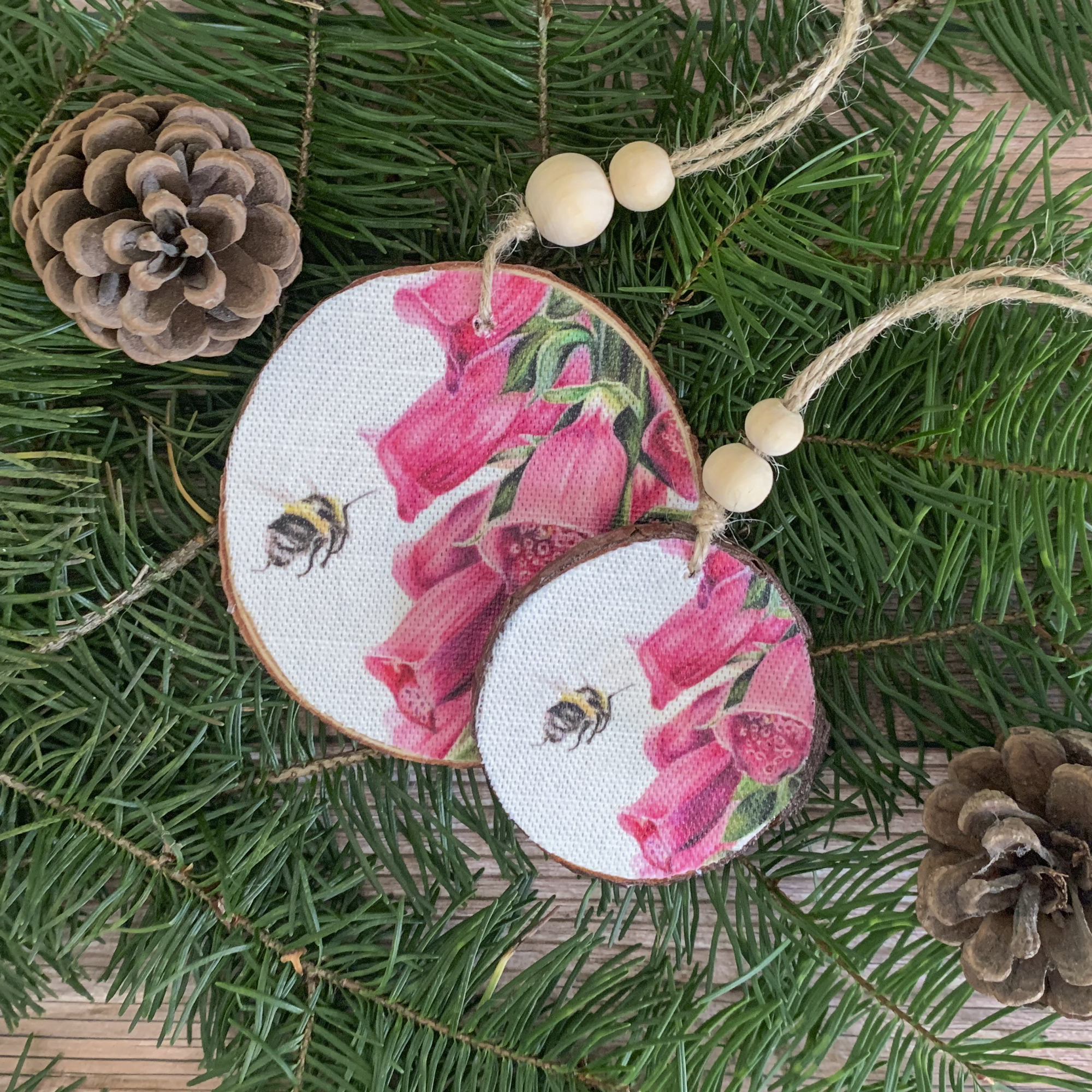 Foxglove and Bumblebee – Wooden Ornament Decoration