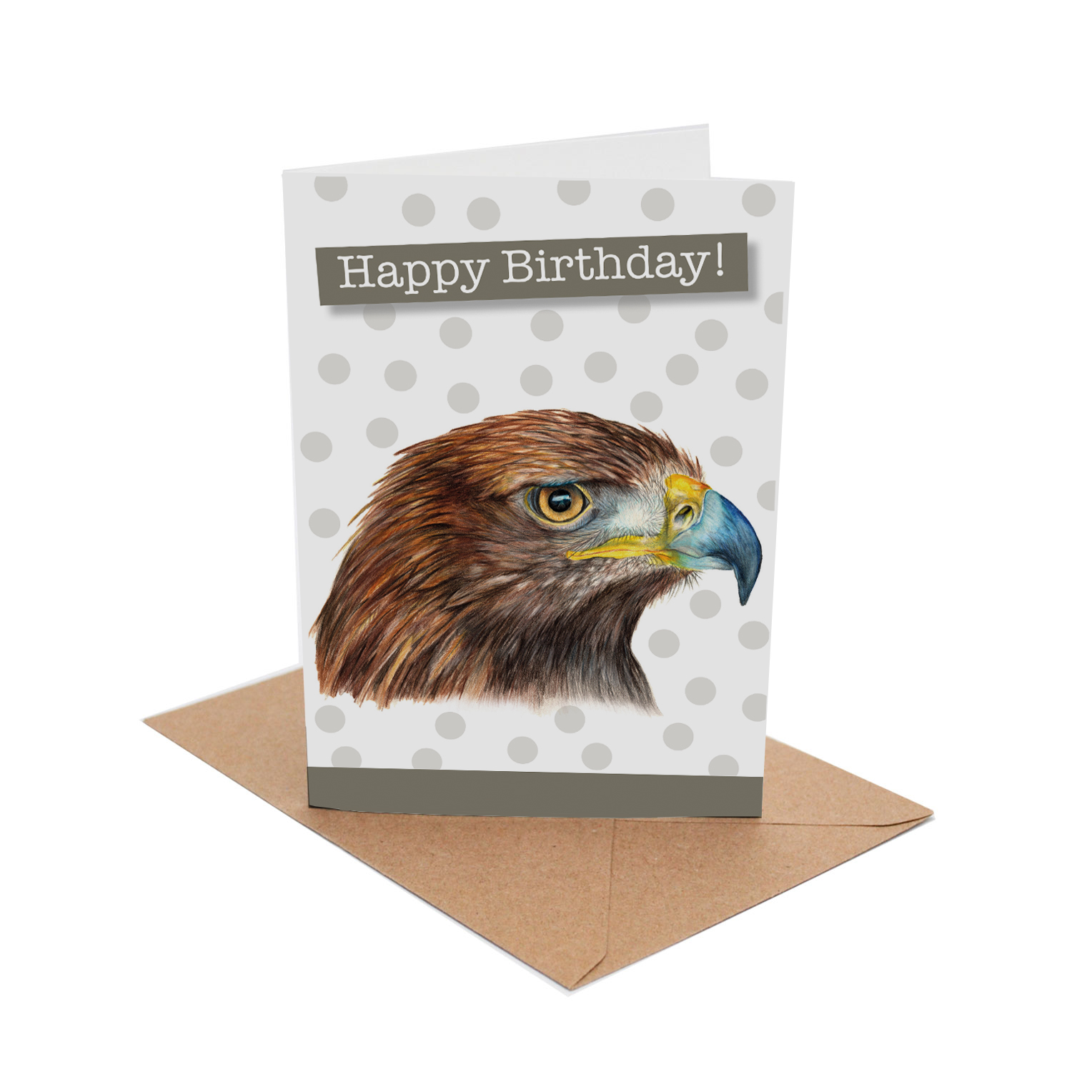 The magnificent Abel is the star on this Birthday Card. Abel is a golden eagle and represents the birds of prey category in our bird themed cards.