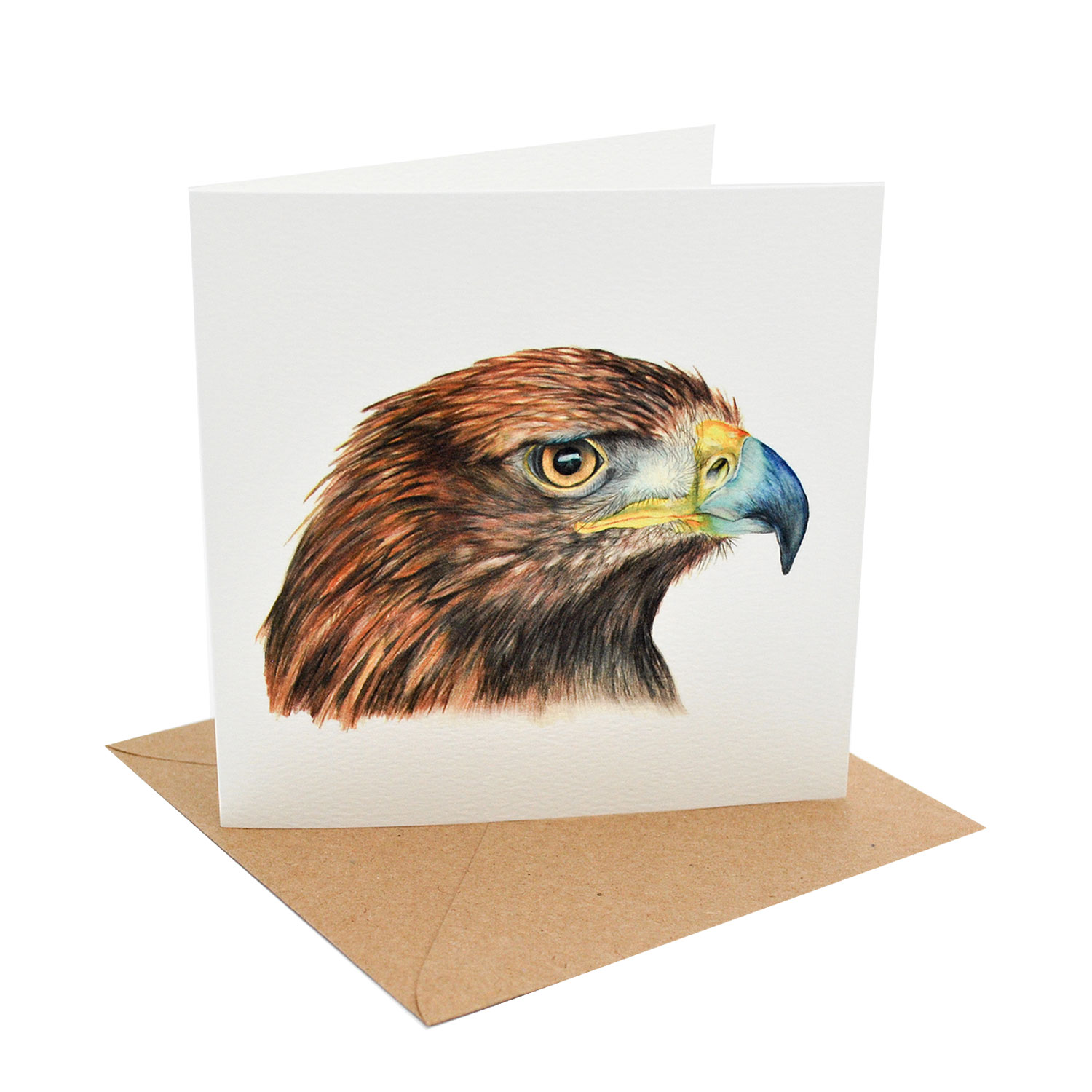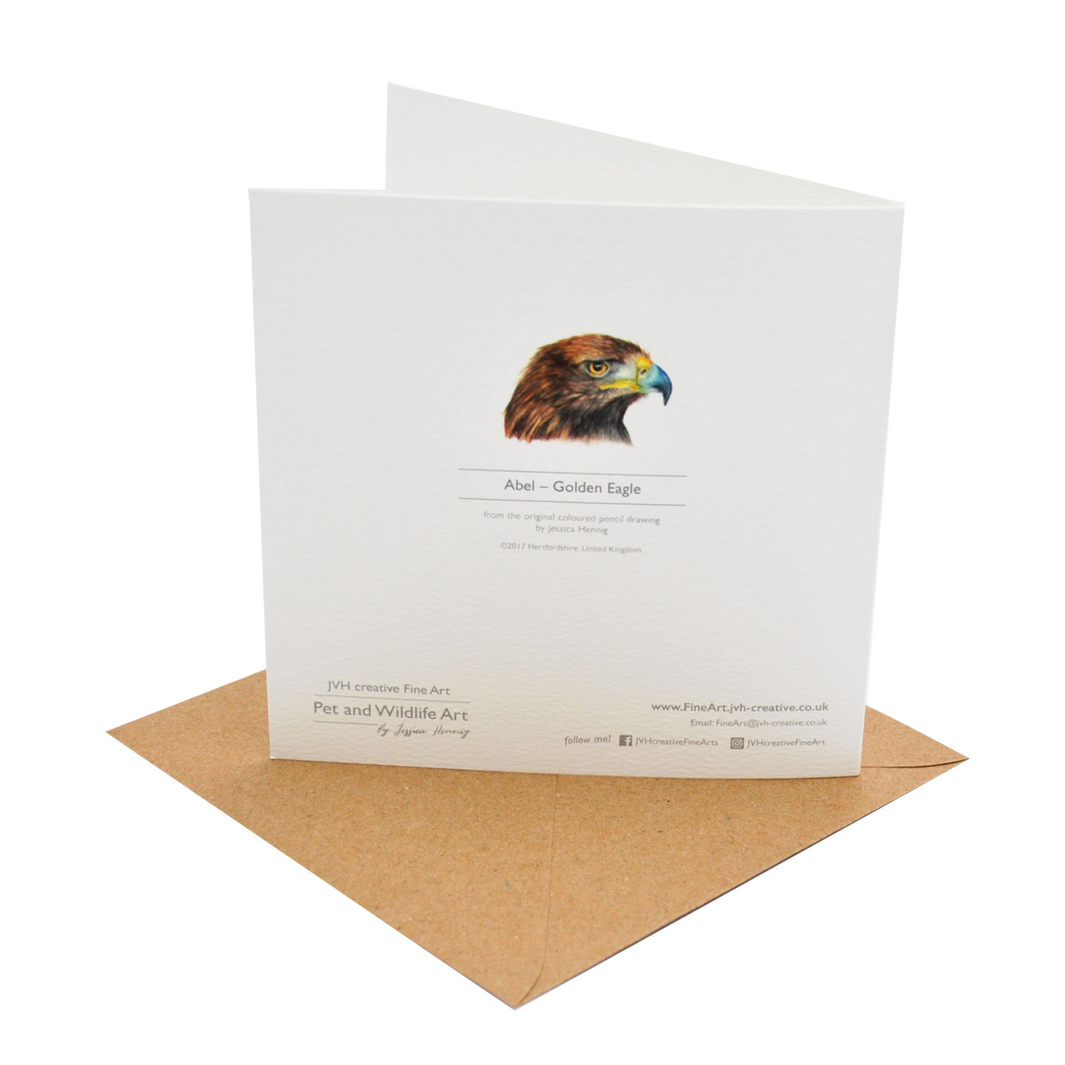 This greeting card presents the drawing of one of the most well-known and magnificent birds of prey in the UK. His name is Abel the Golden Eagle.