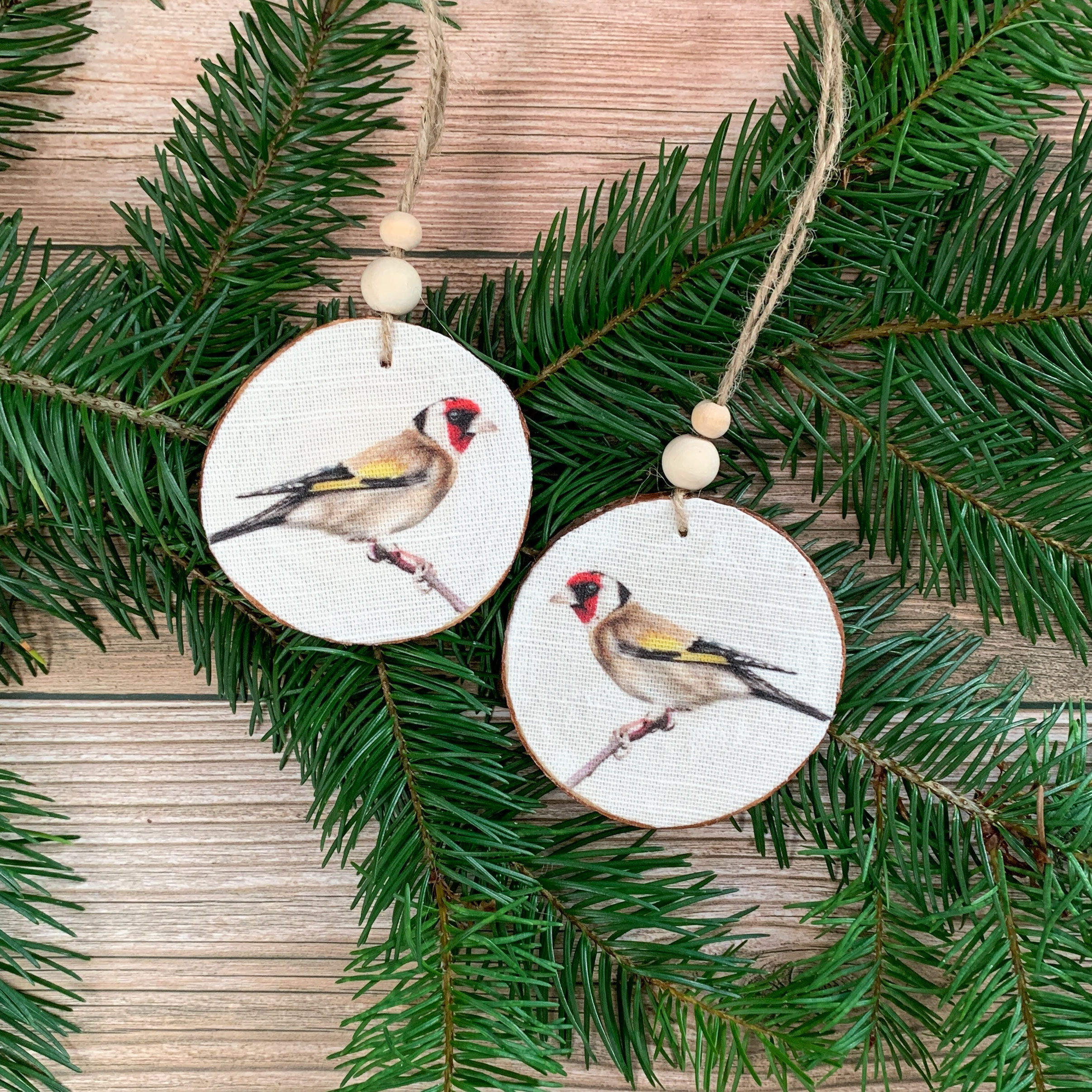 Goldfinch, bird Wooden Ornaments ready to hang.