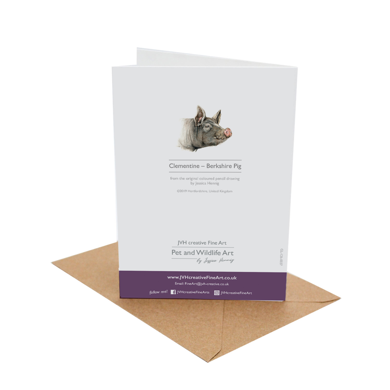 This is Clementine the Berkshire Pig, she is posing on our Good Luck Card!