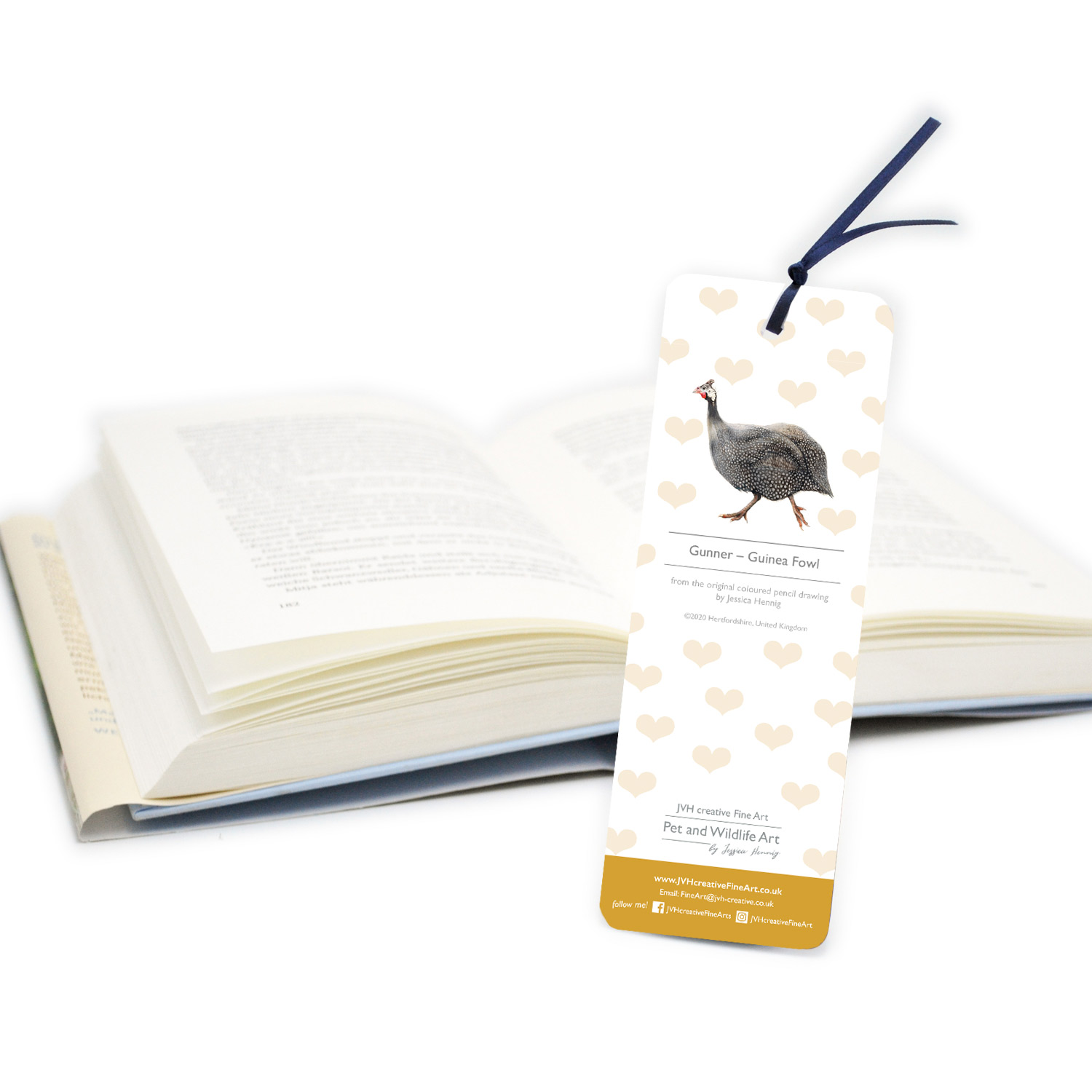 Our speedy Gunnar the Guinea Fowl is featured on this bookmark.