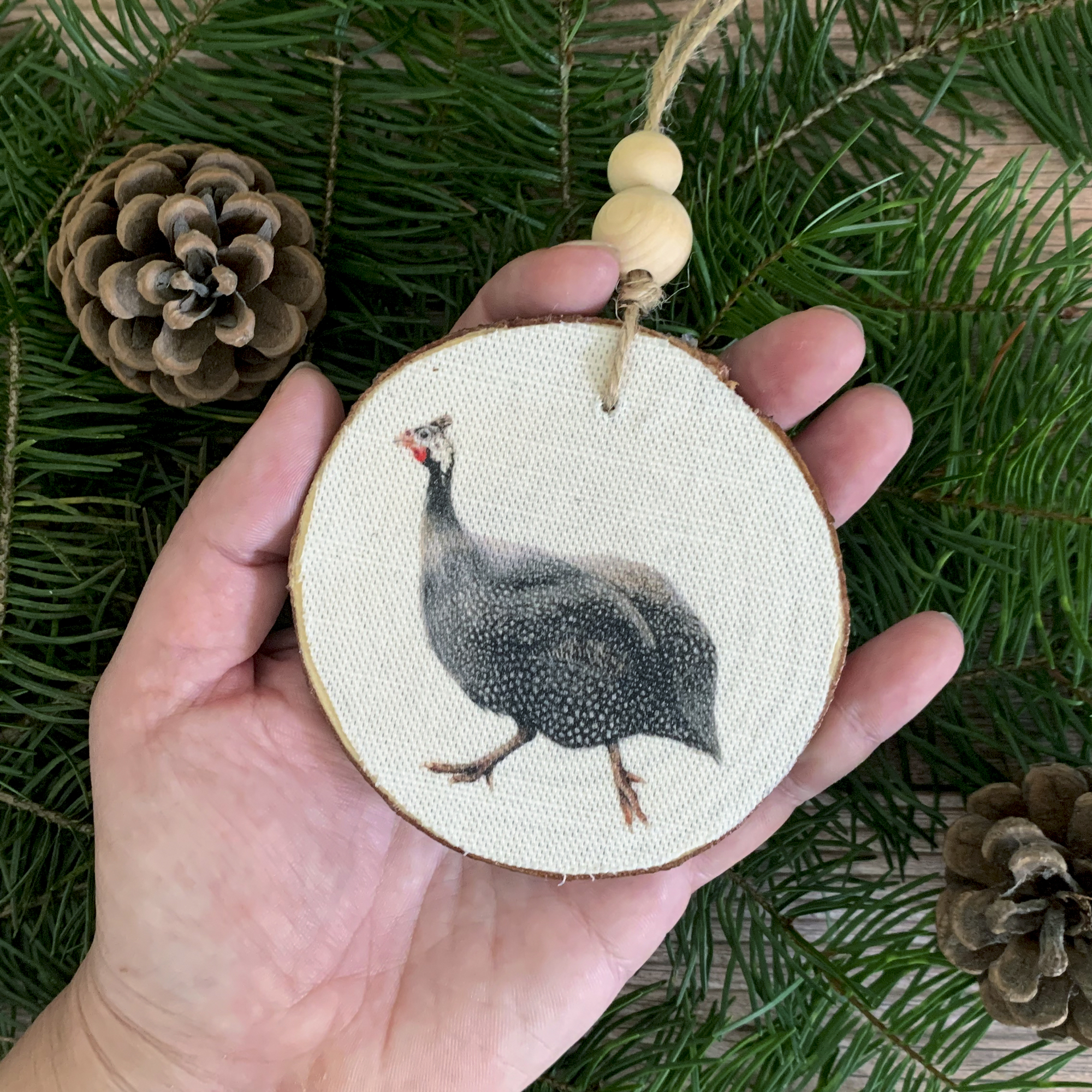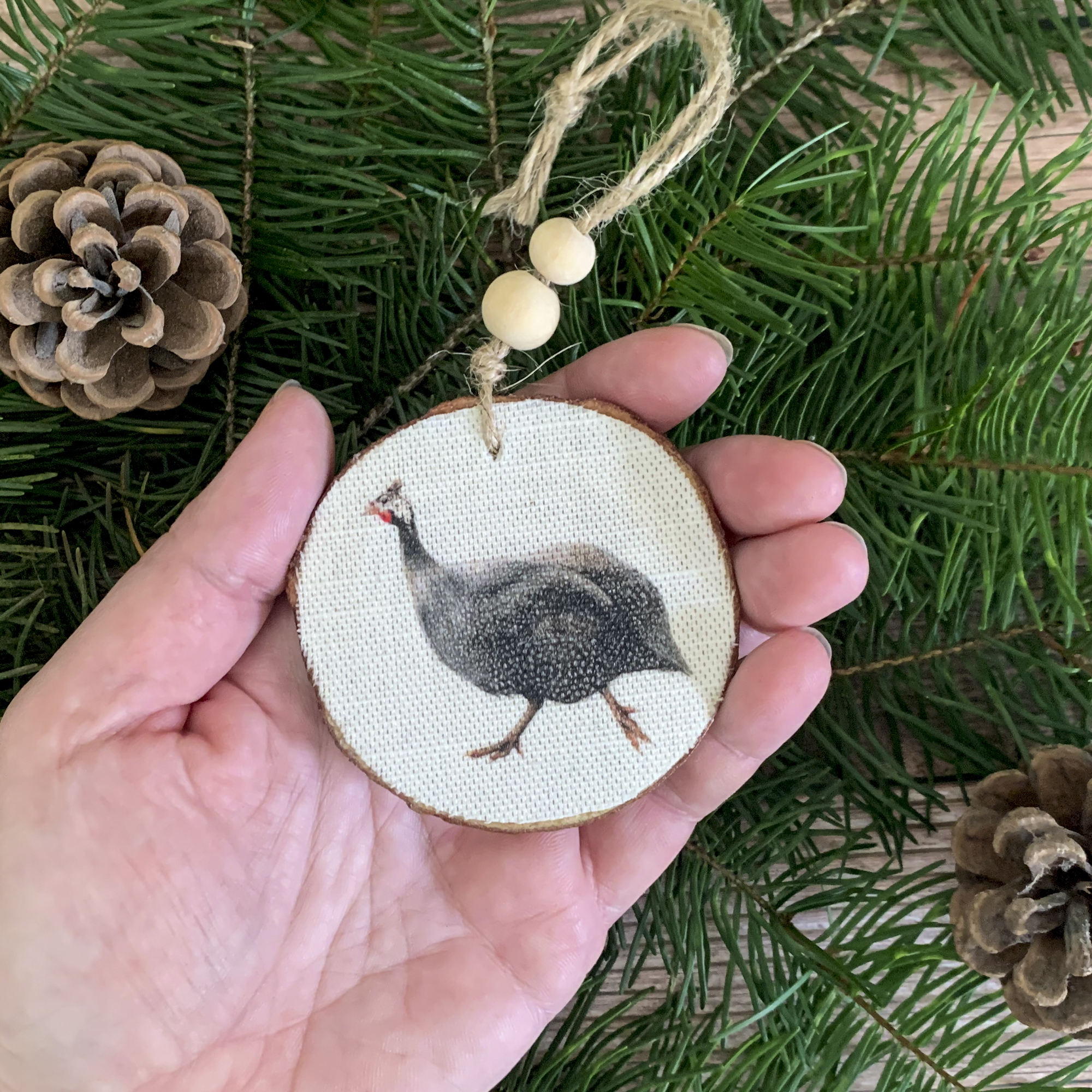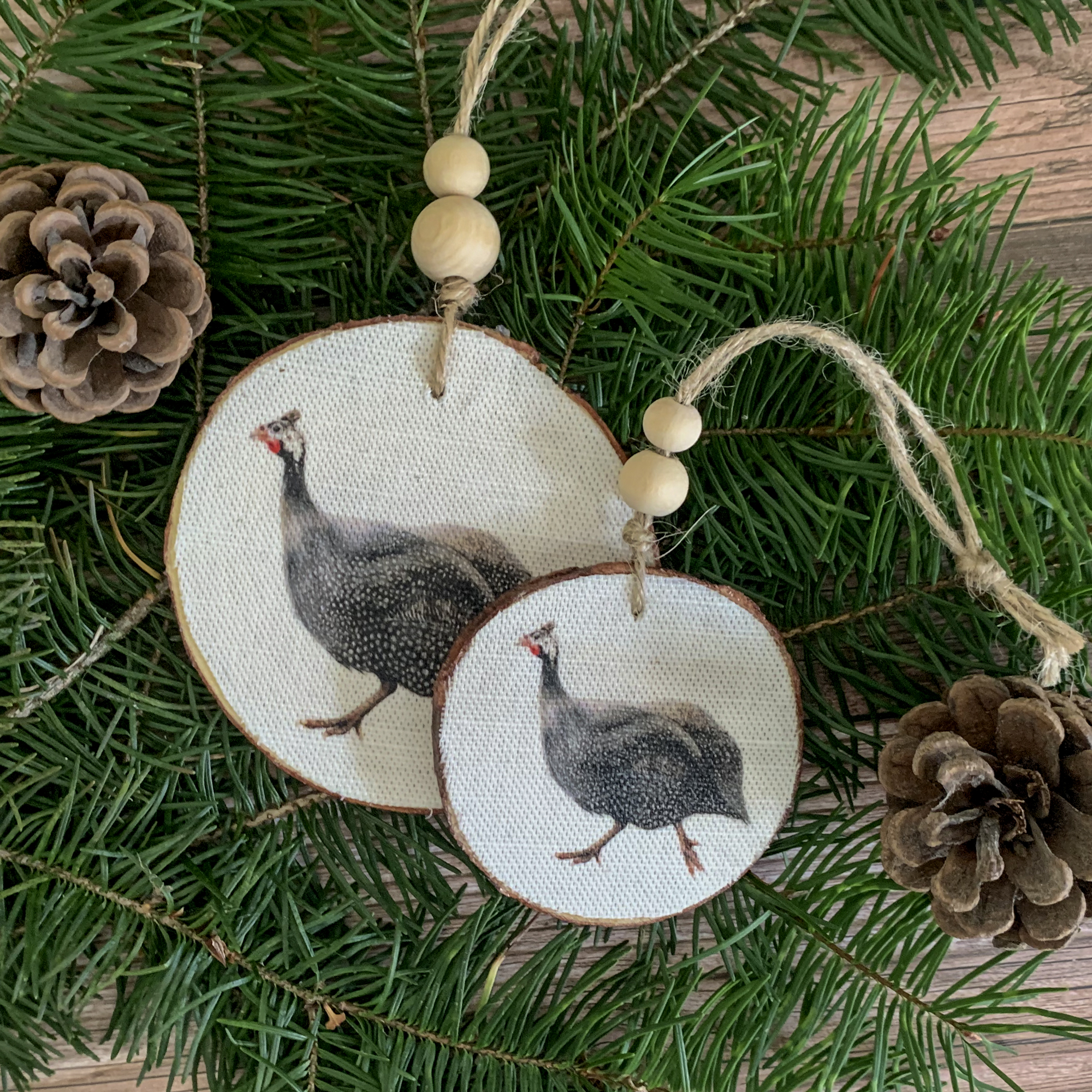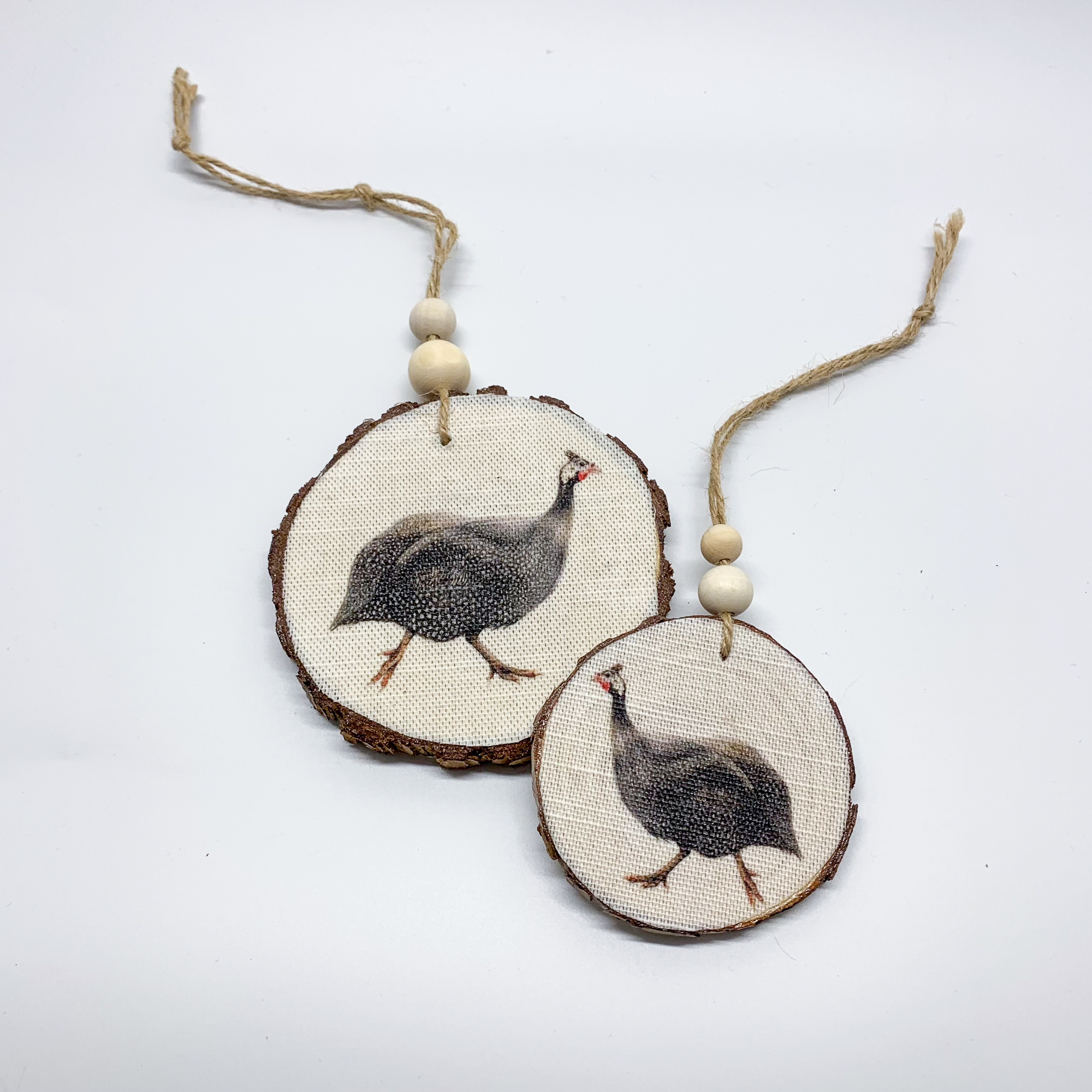 Guinea Fowl, Animal Wooden Ornaments ready to hang.