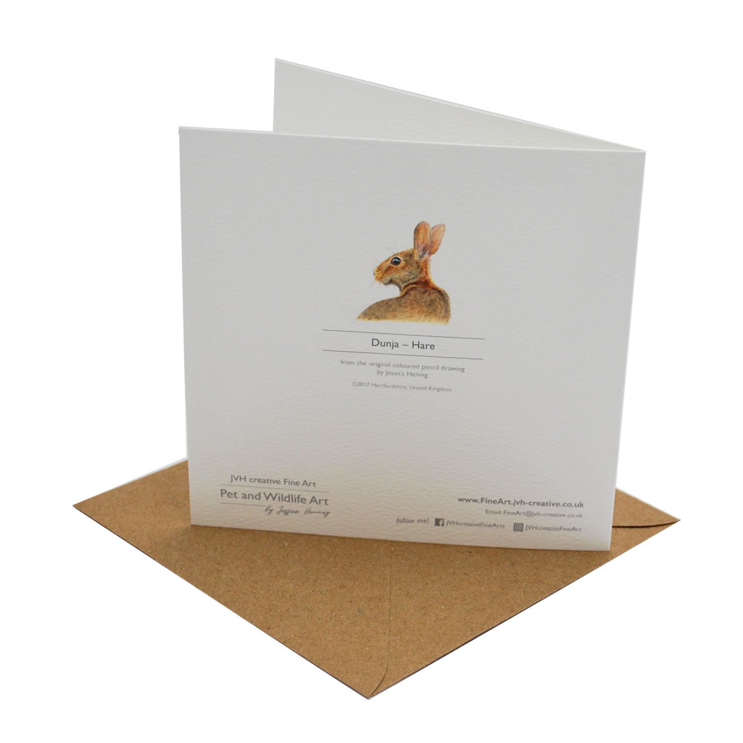 This ubercute Christmas Card shows Dunja the Hare, on a lovely snow white background. Accompanied by a brown kraft envelope, you can add your own festive wishes inside the card.