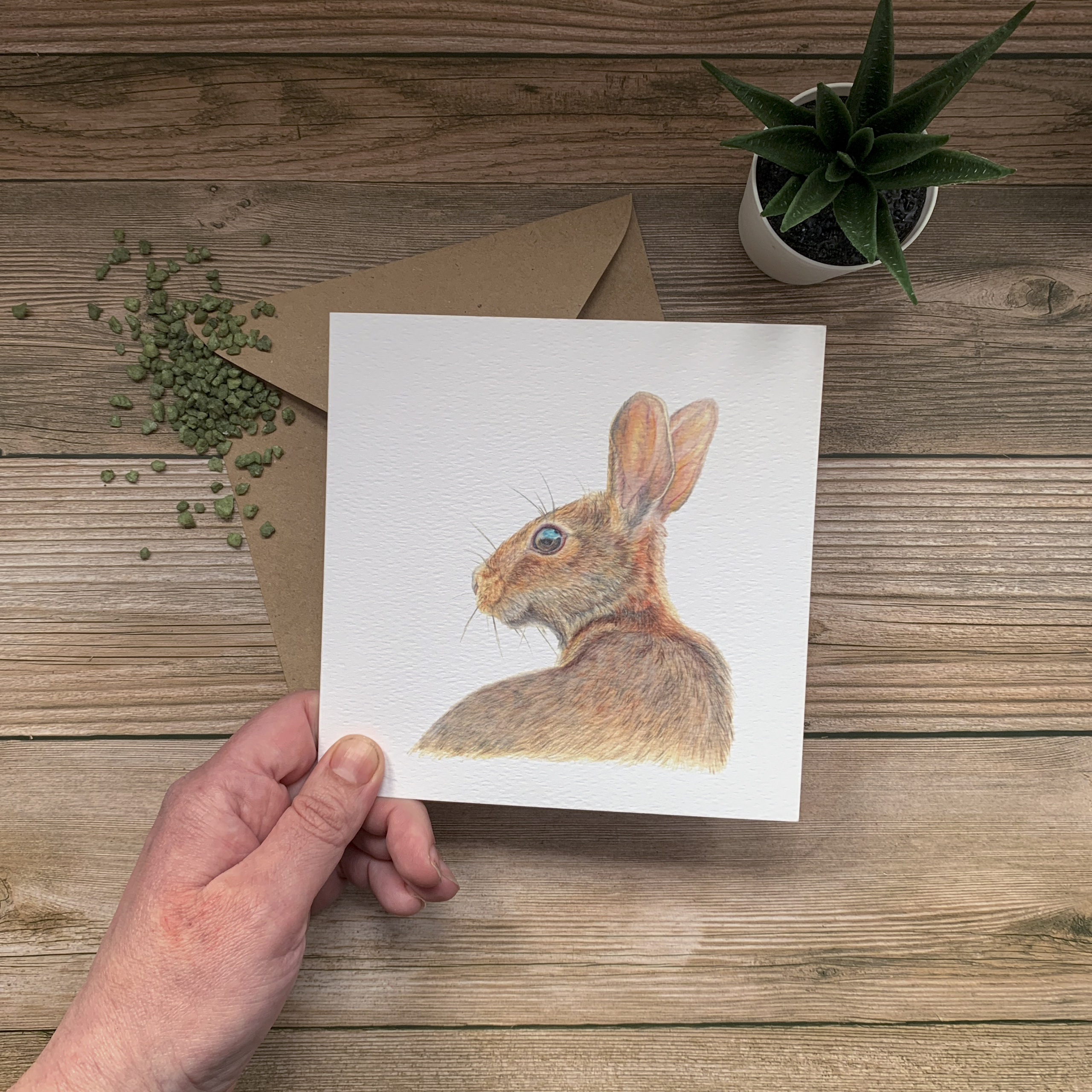 This memorable greeting card features the beautifully detailed drawing of Dunja the Hare.