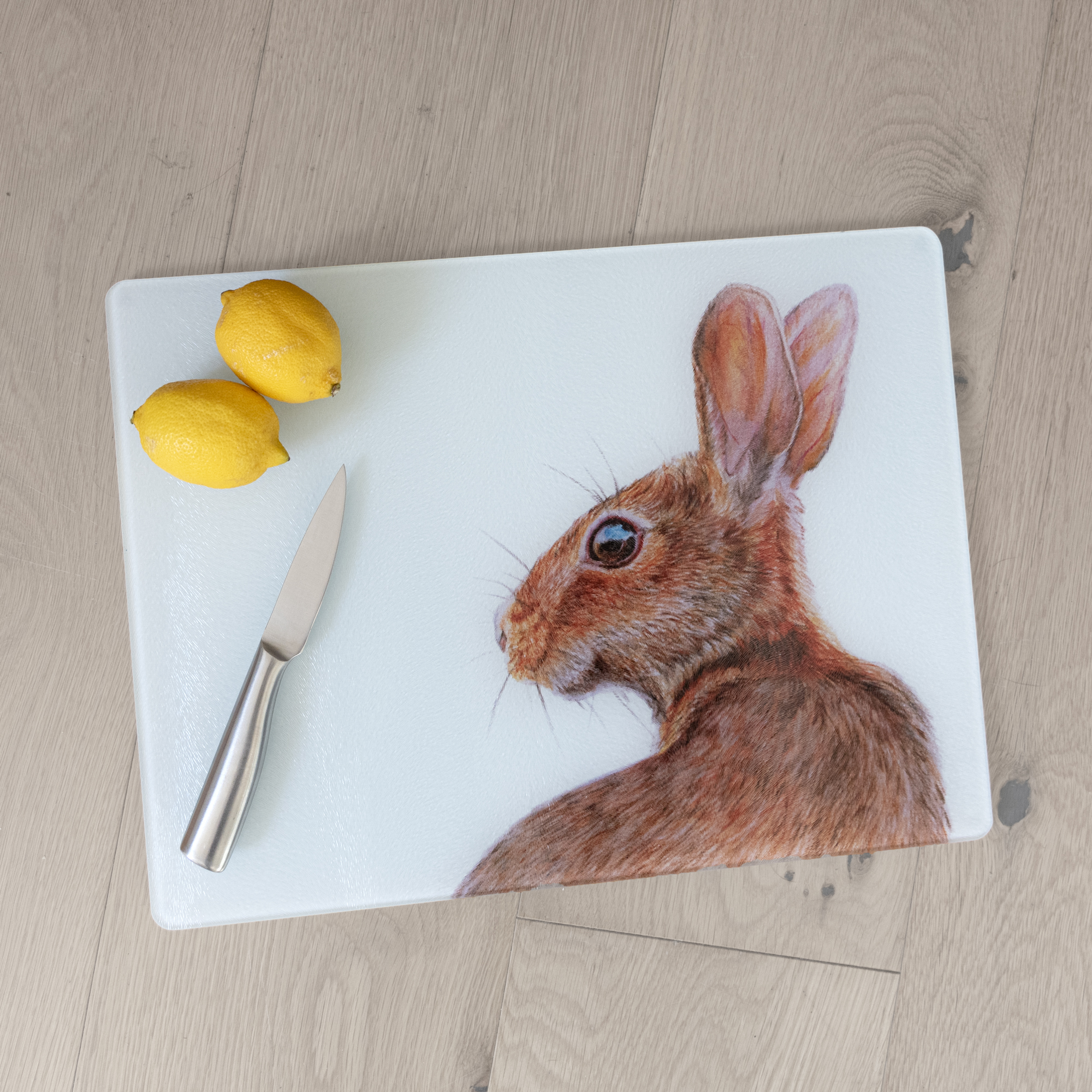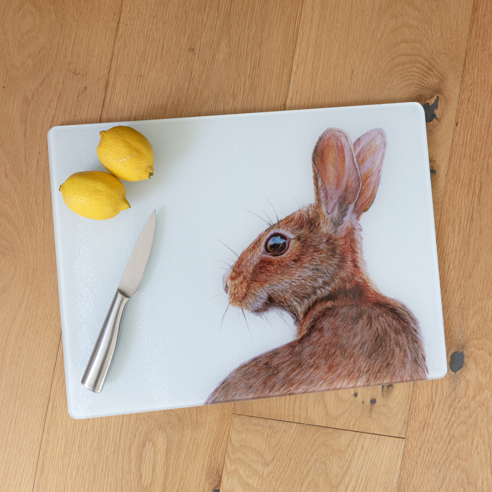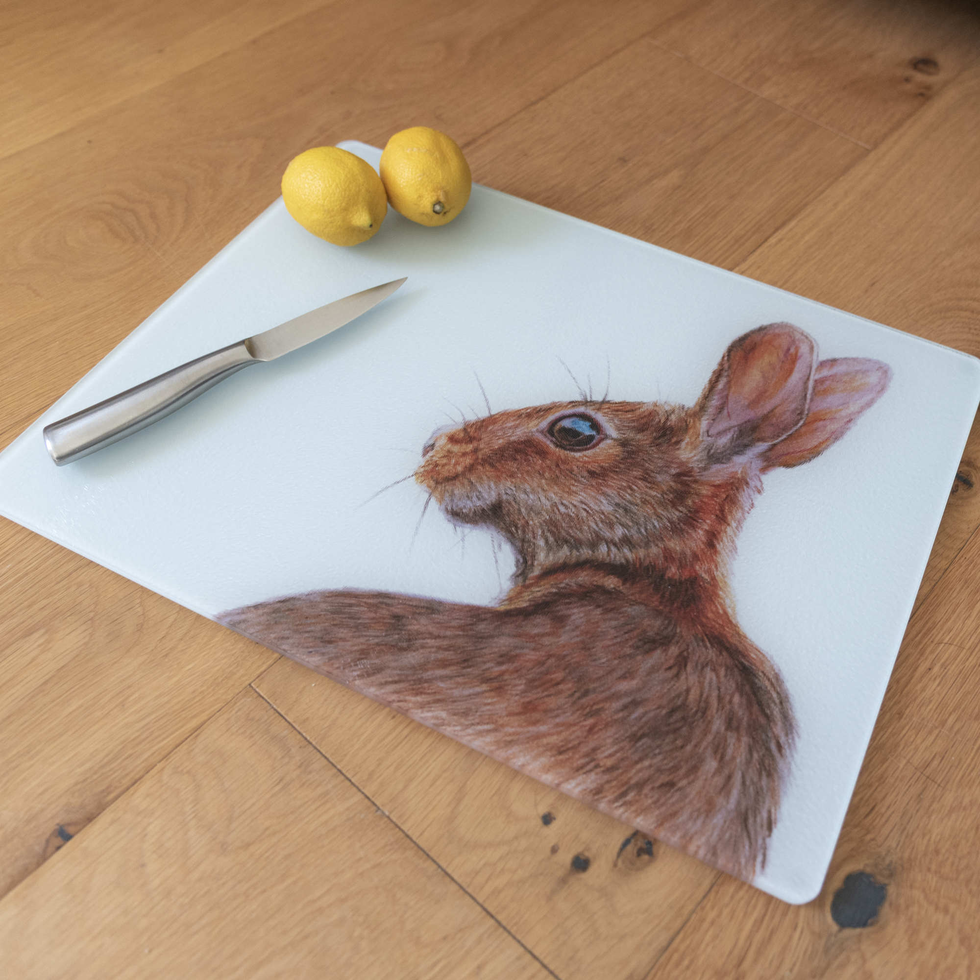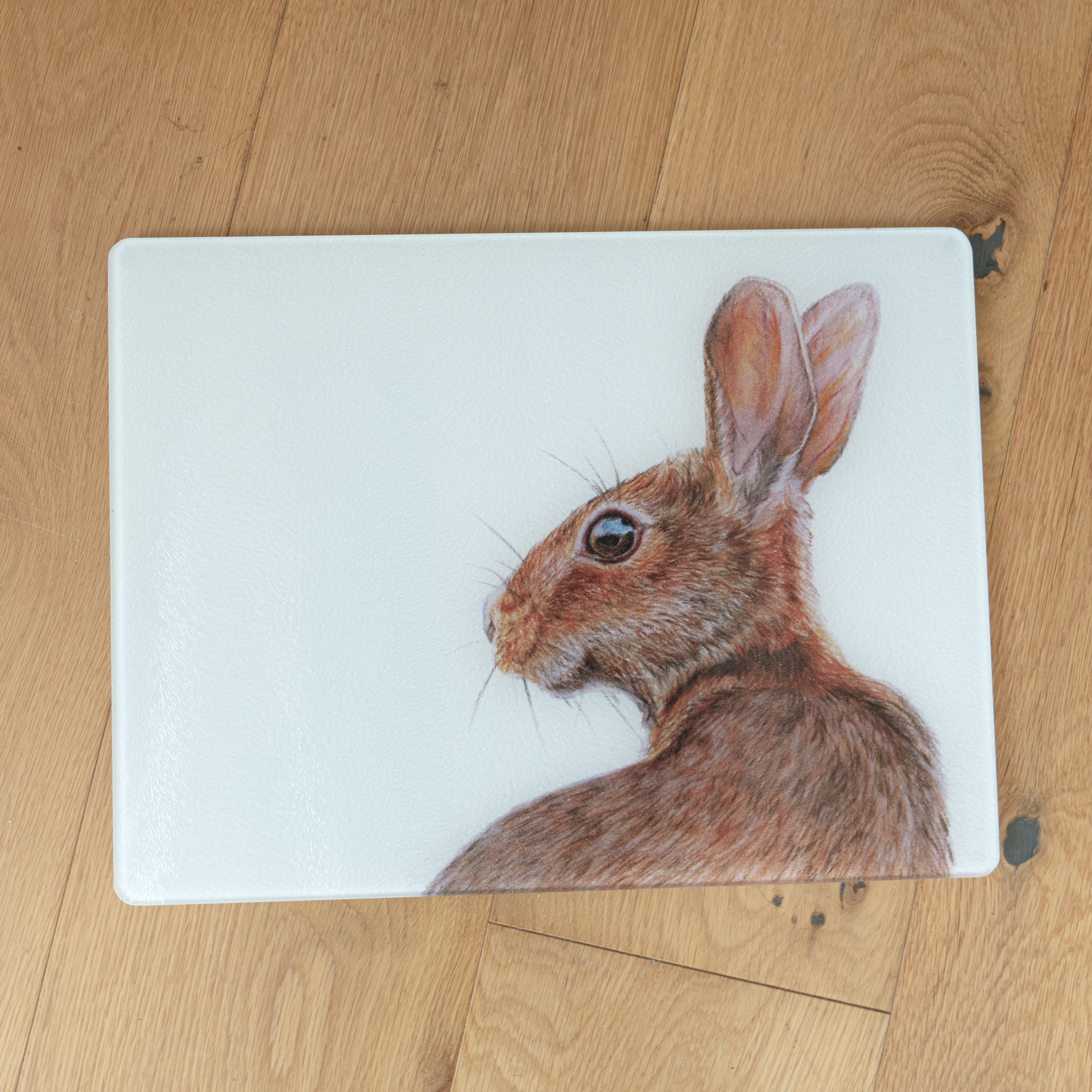 Dunja the Hare is a colourful original coloured pencils drawing and featured on these extra large Worktop Savers, guaranteed to add some colour to your kitchen or dining rom.