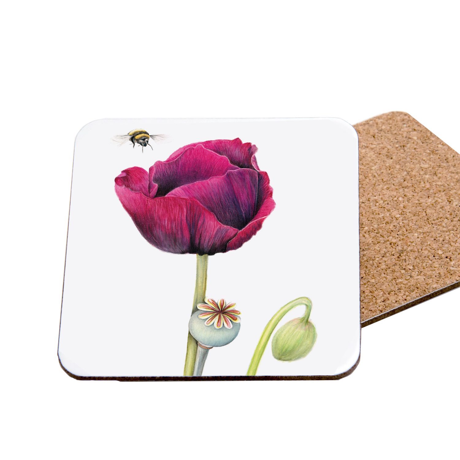 Tags: botanical art, Coaster, Pollinator, Poppy Bee