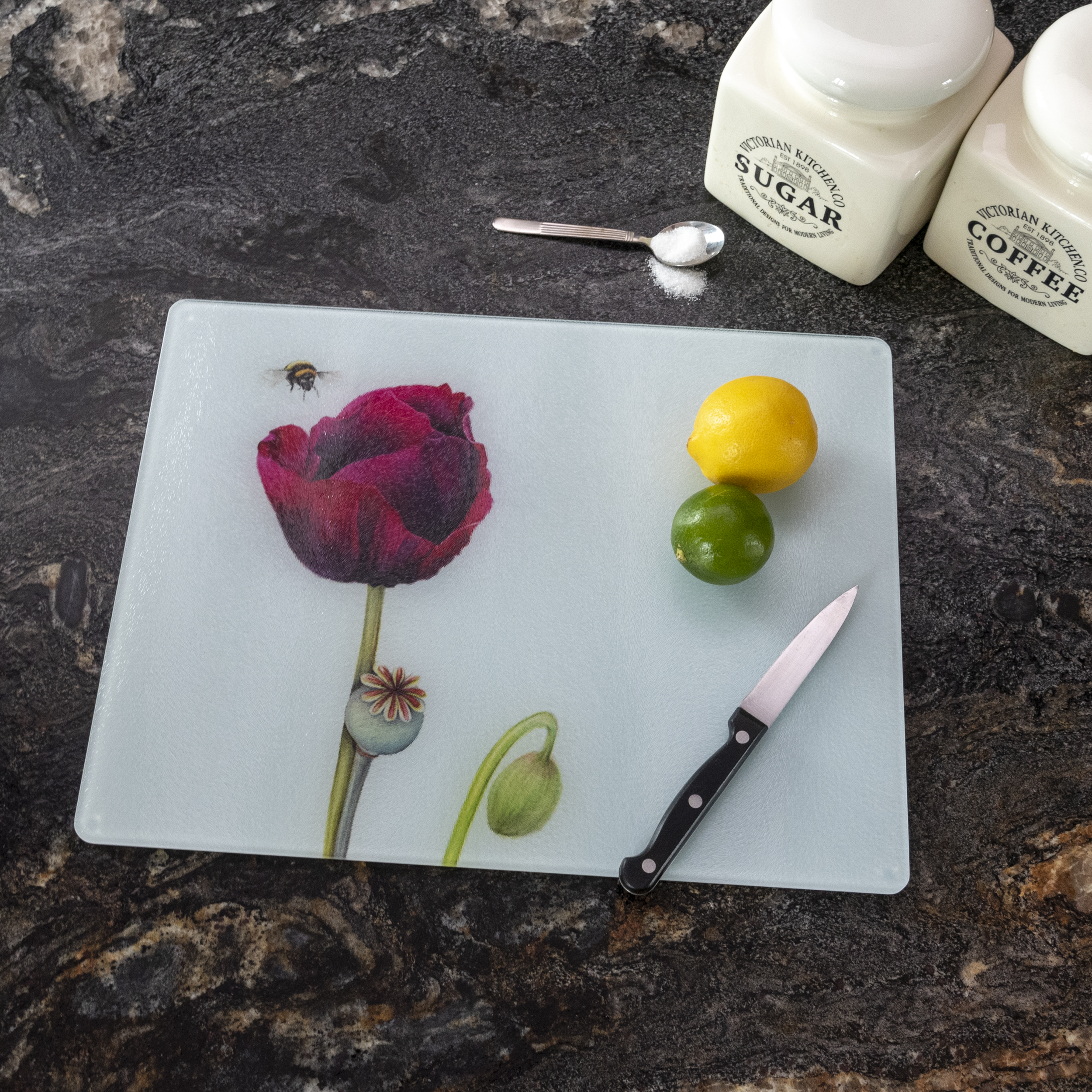 Poppy and Bee Glass Worktop Saver, textured or smooth finish