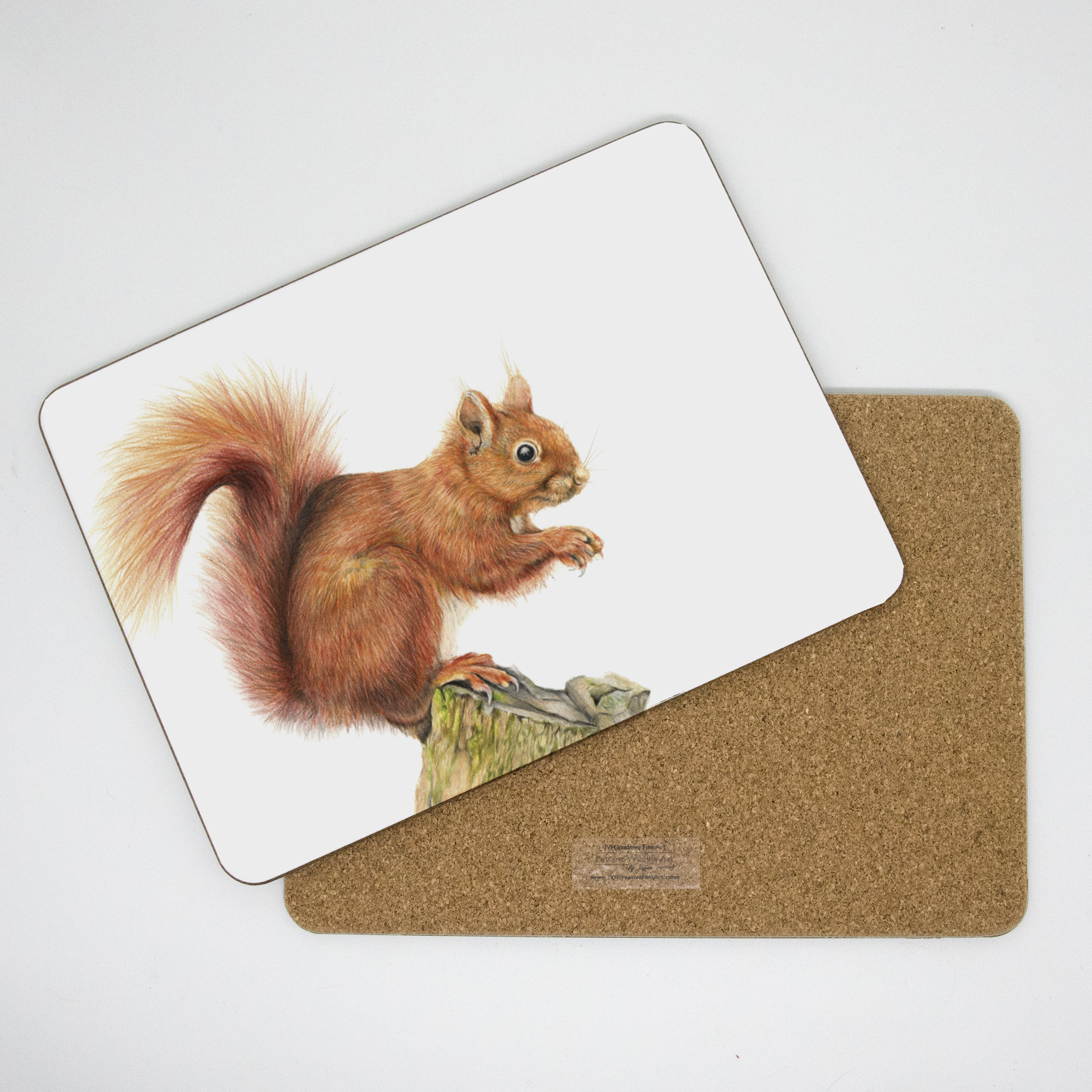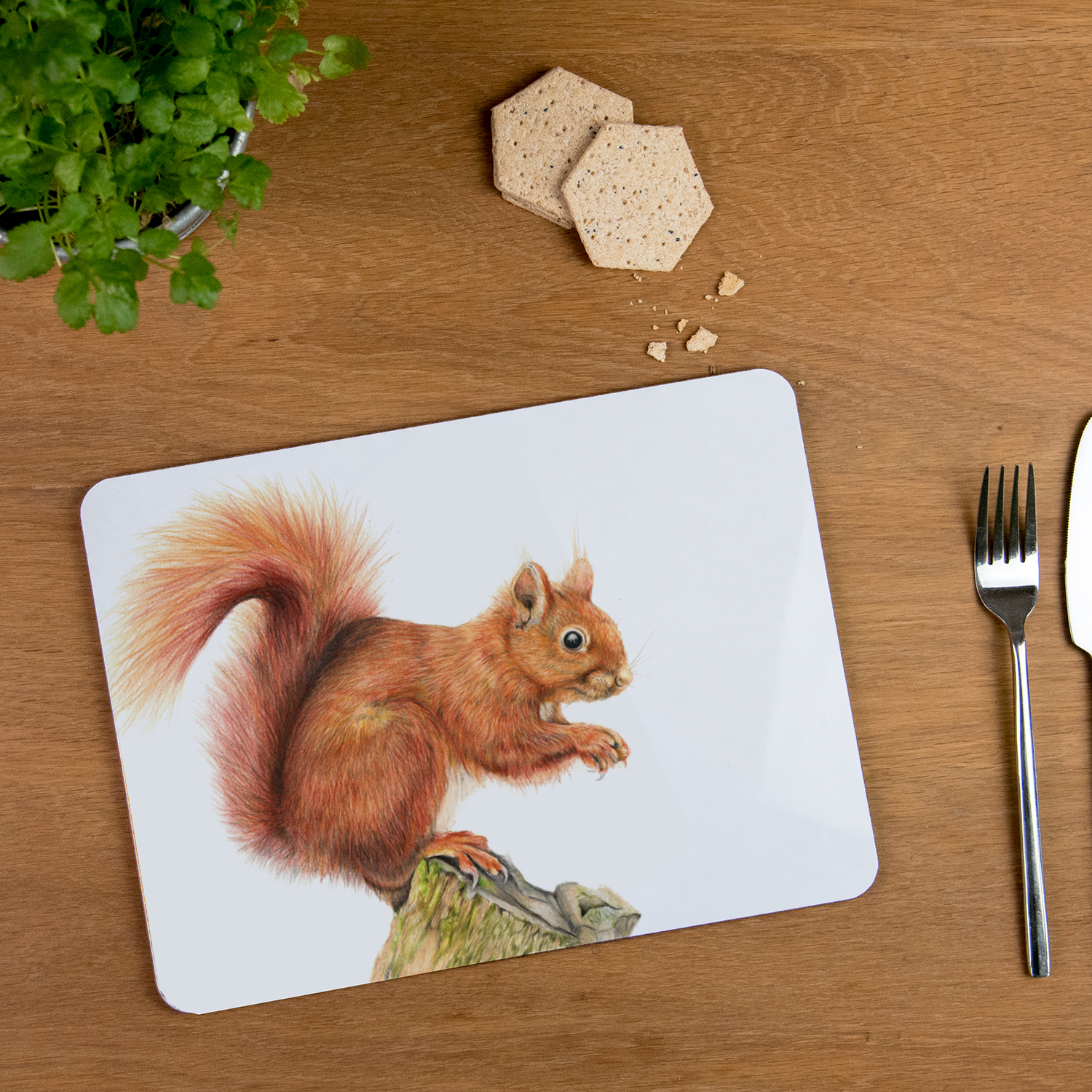 The red squirrel drawing is featured on these Placemats. These Placemats not only help to protect your dinner table form heat damage, spills or scratches, but also add some colour to your home. – A great gift idea for birthdays or the next housewarming you are invited to.