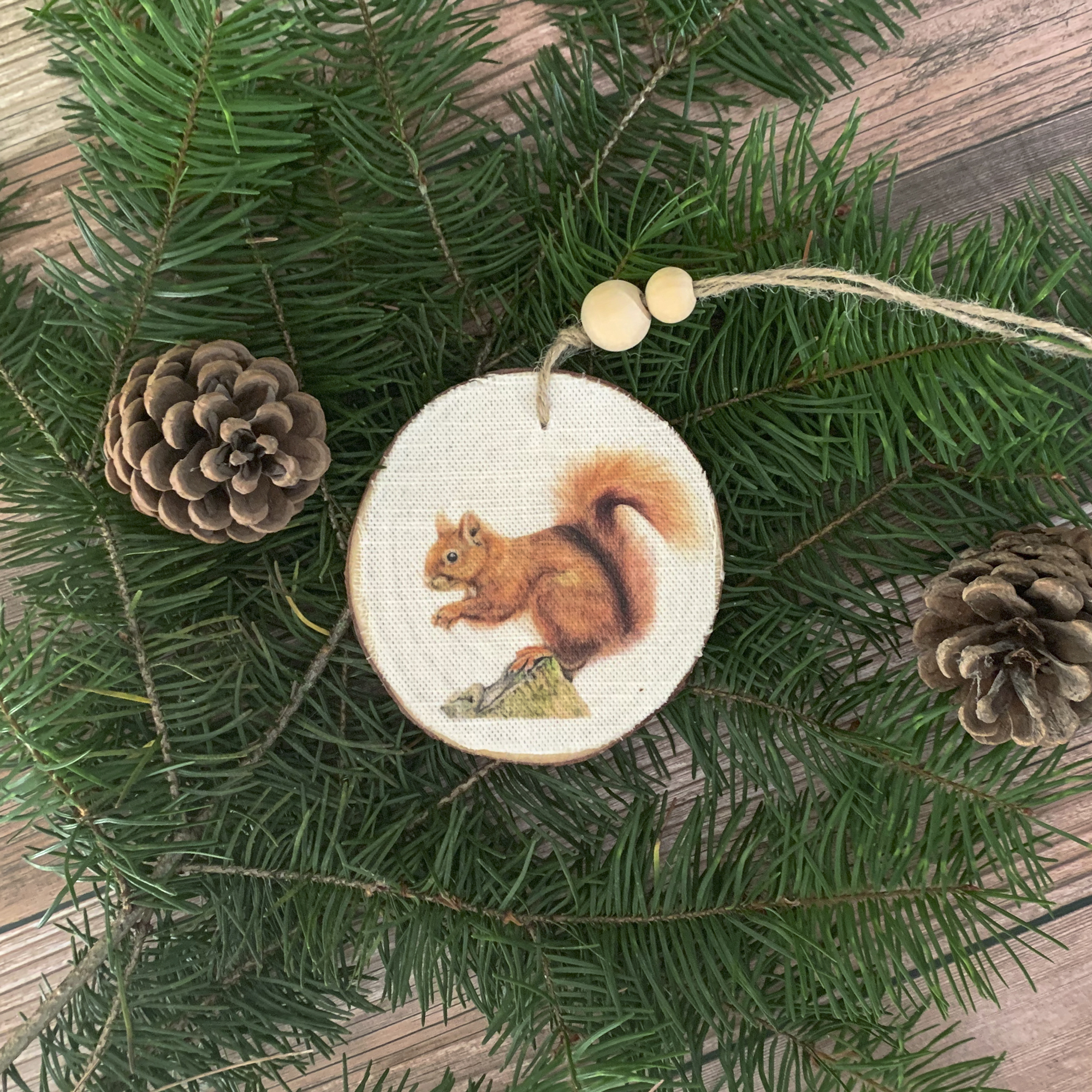 Red Squirrel, Animal Wooden Ornaments ready to hang.