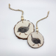 These natural wooden are decorated with custom printed cotton fabric on both sides. The fabric features the print of my original coloured pencil drawing of Sammy the Red Squirrel.