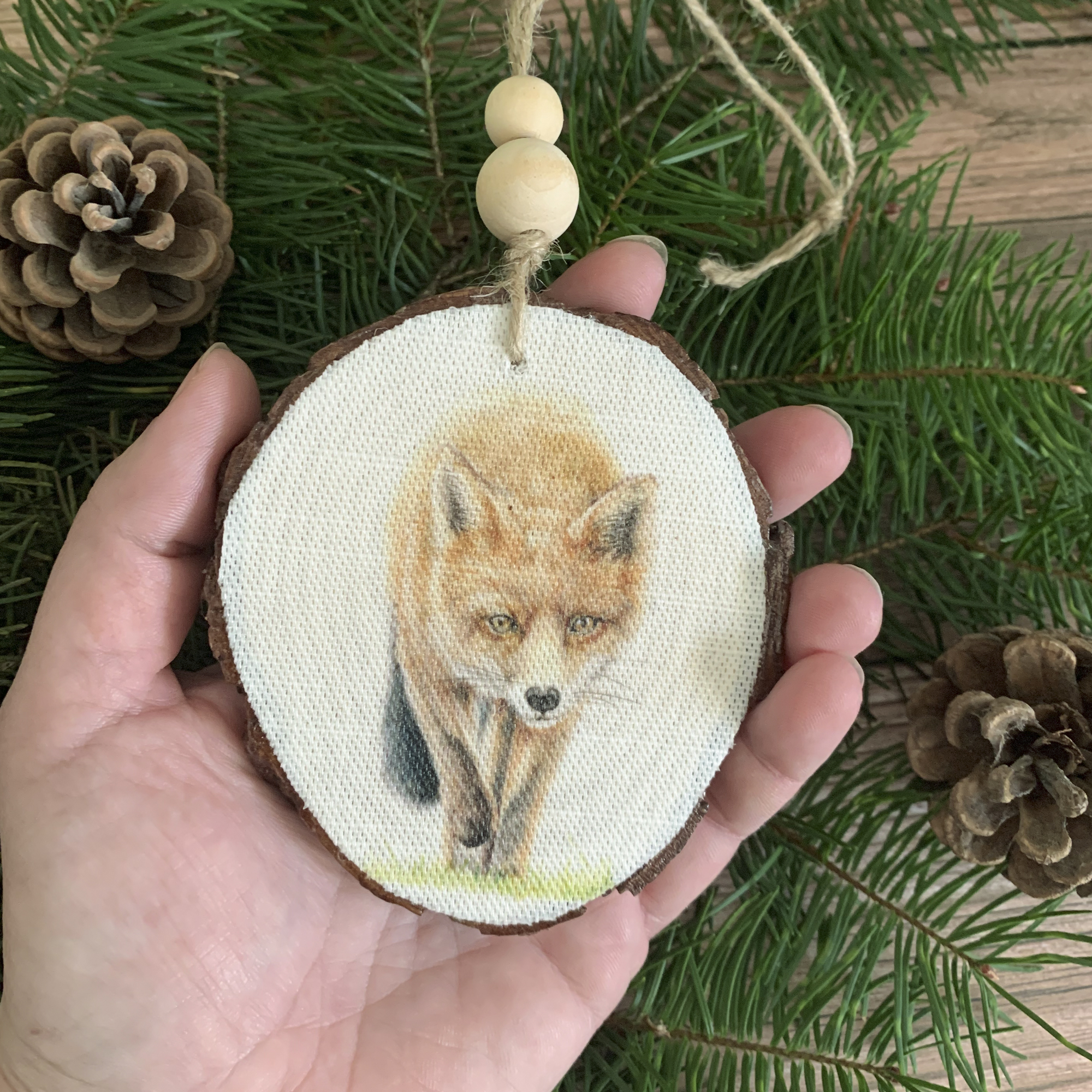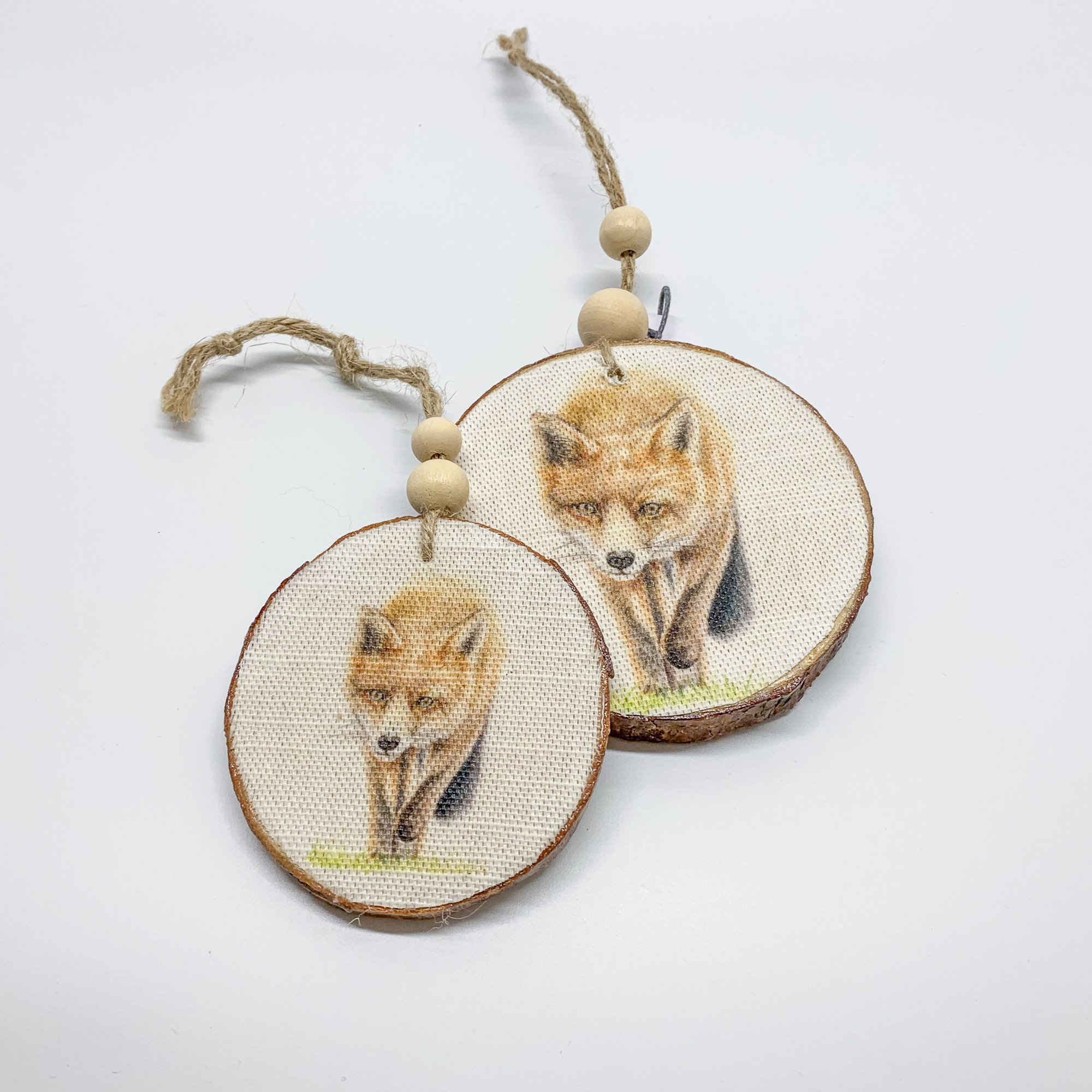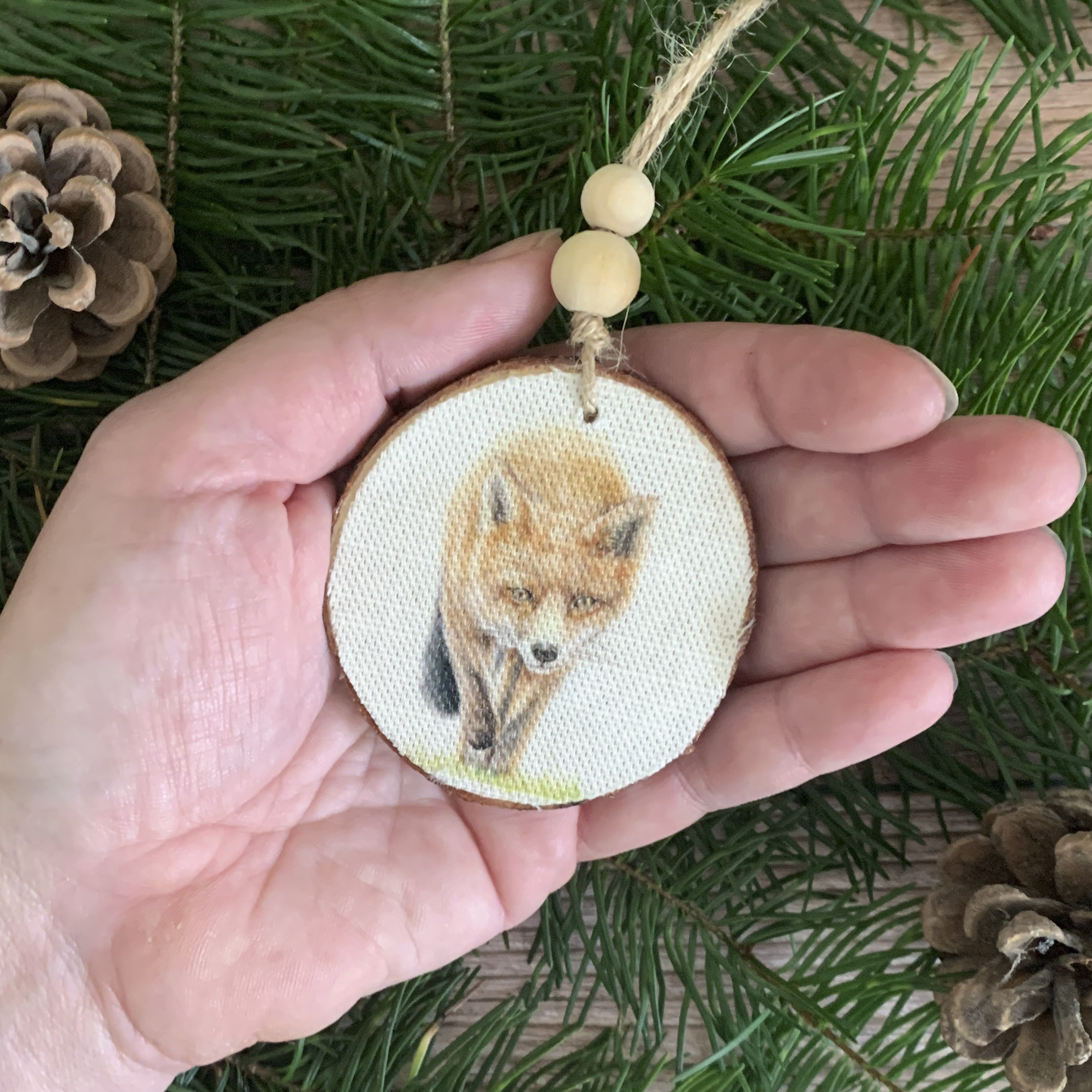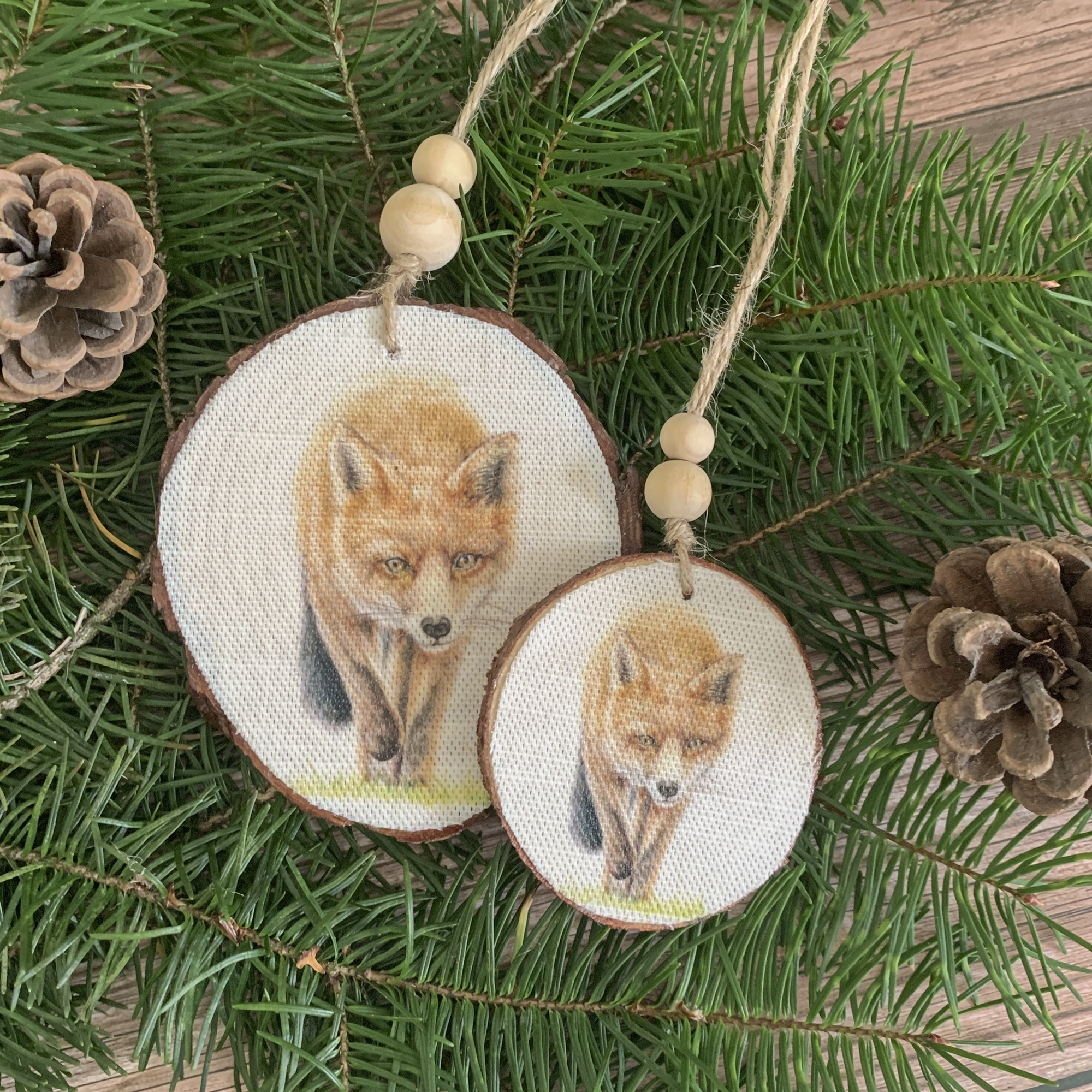 Sneaking Fox, Wildlife Wooden Ornaments ready to hang.