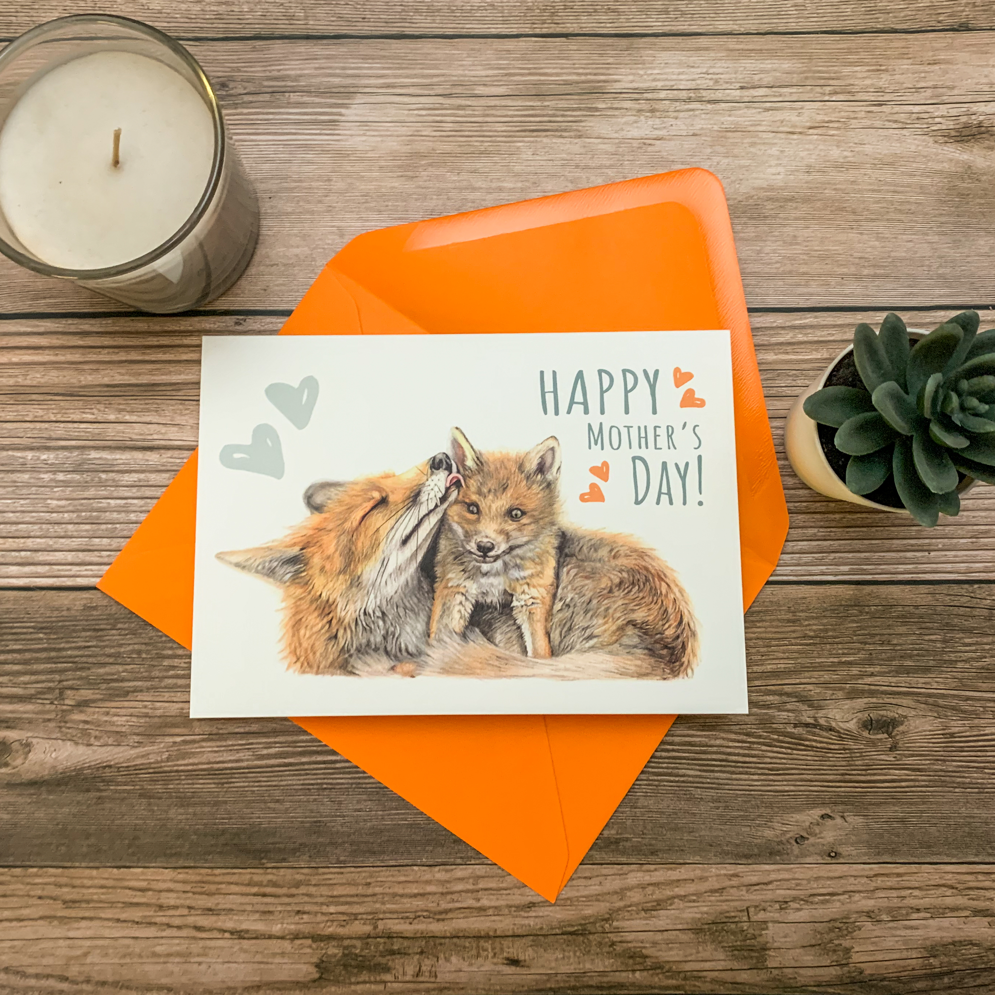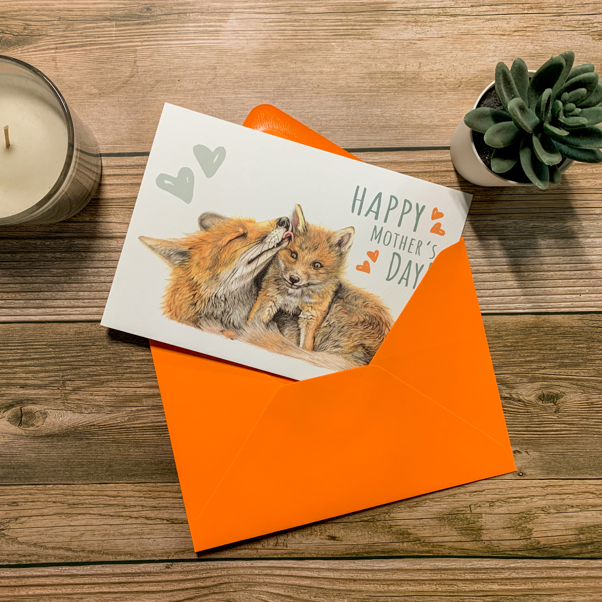 Make your Mum smile this Mother’s day! Wish her well with this uplifting and bright coloured, wildlife fox card. A Mother’s Love – Vixen and Cub comes with a high quality, orange envelope, matching the cards colour theme. It sure will to stand out and not be missed!