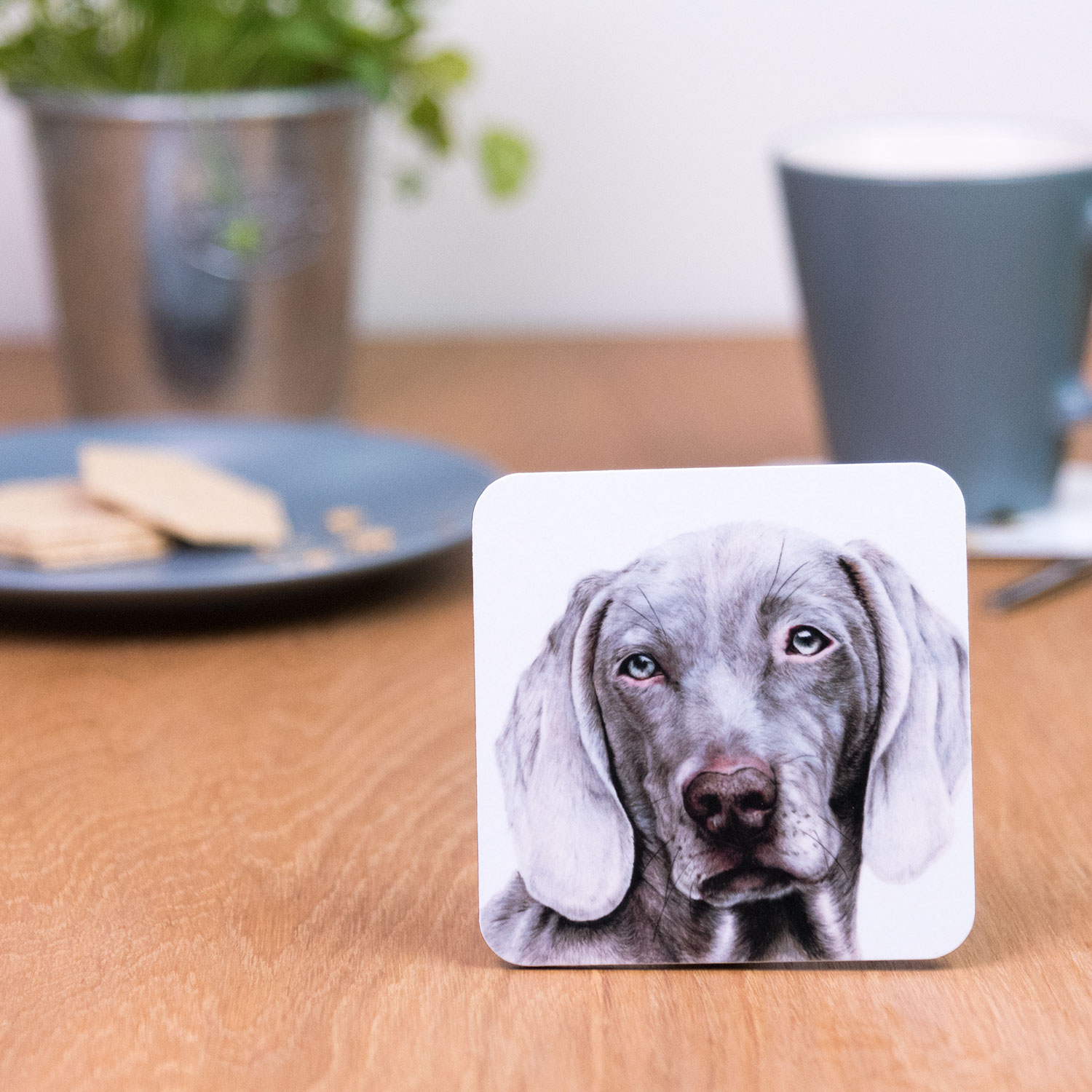 Timmy the working gun dog is posing on this coaster – he actually is a Weimaraner a lovely, loyal breed.