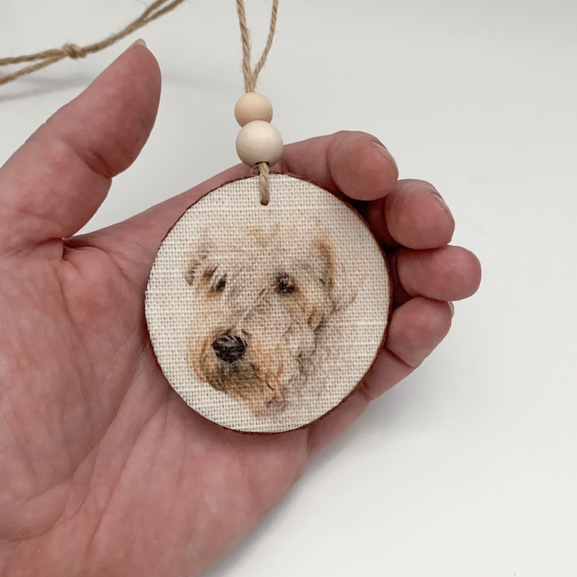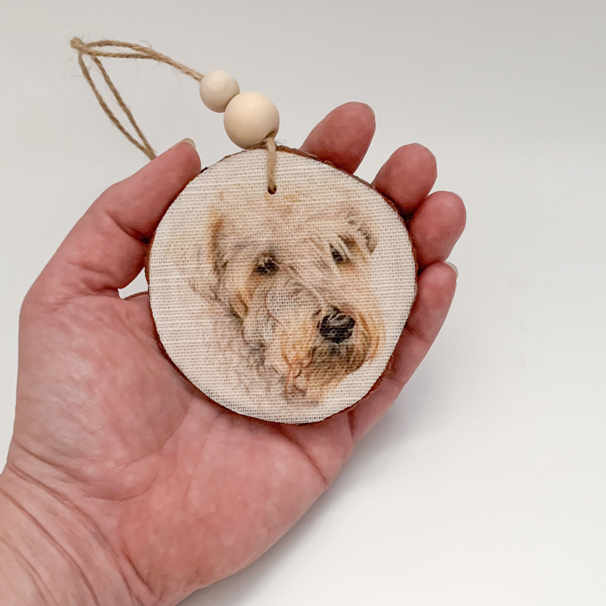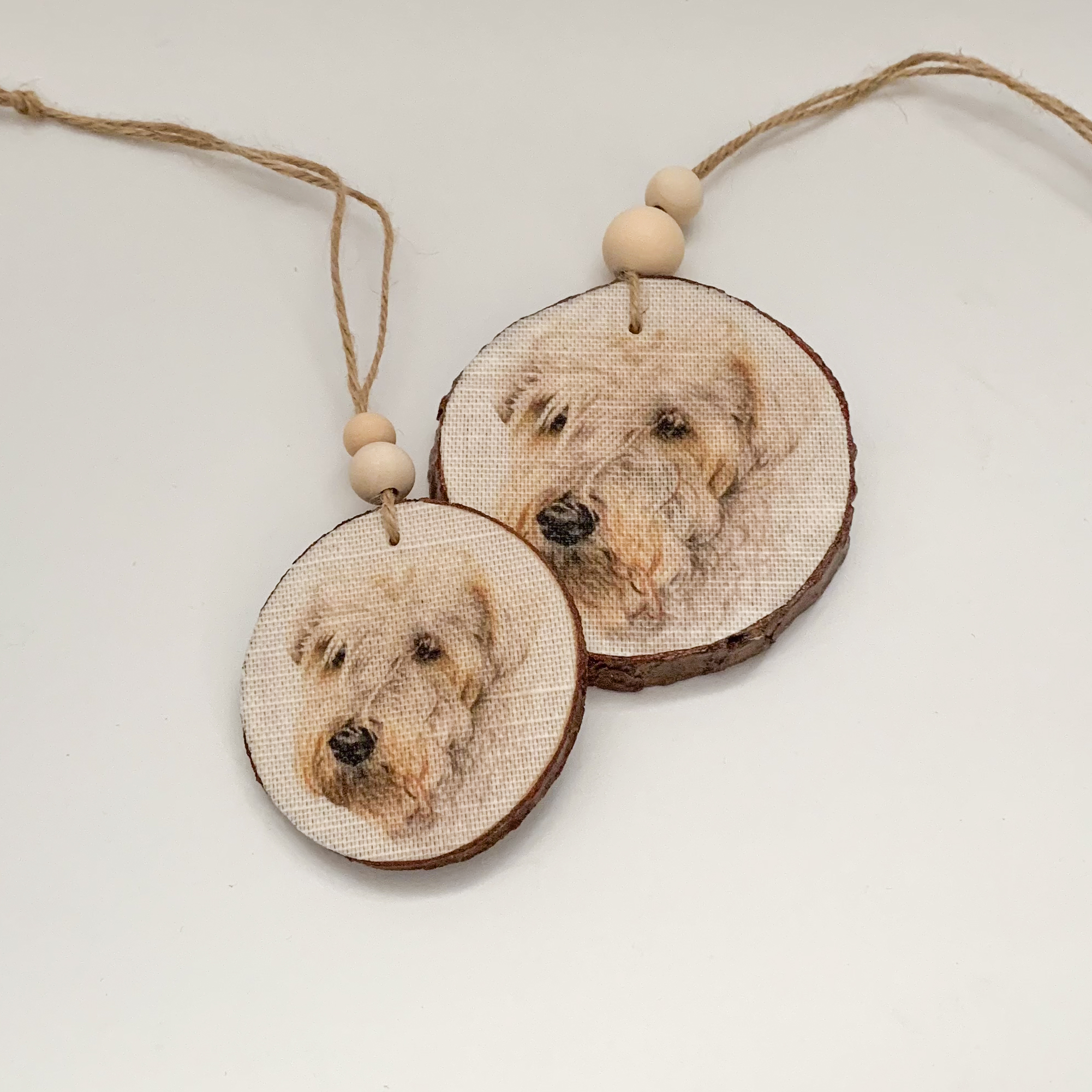 Wheaten Terrier, Delphi Dog Wooden Ornaments ready to hang.
