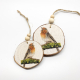 These natural wooden are decorated with custom printed cotton fabric on both sides. The fabric features the print of my original coloured pencil drawing of Marnie the Willow Tit.