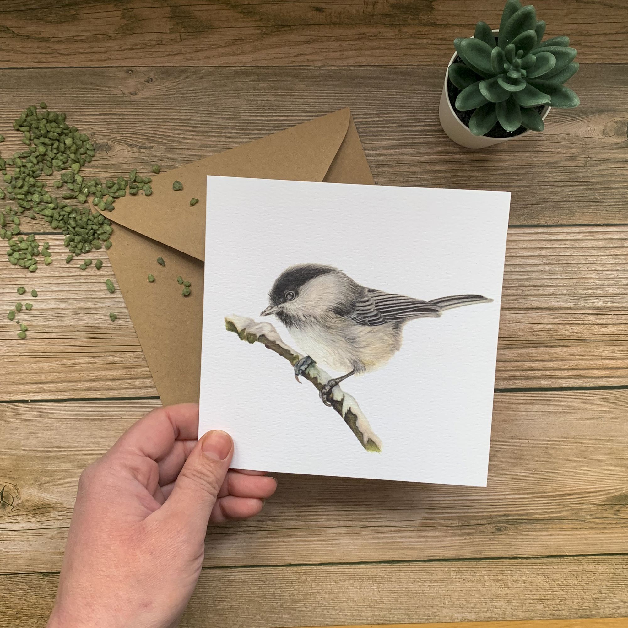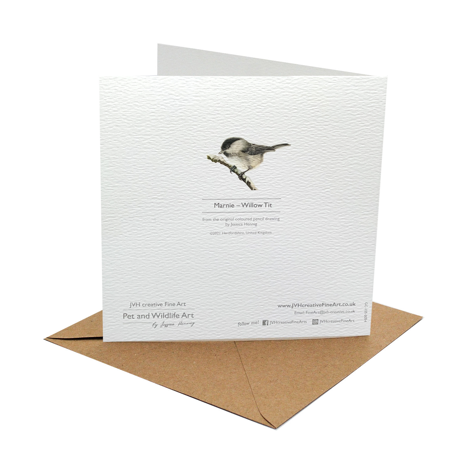 This is Marnie the little Willow Tit, who is featured on our quality Greeting Cards. This drawing is part of the British Bird, Wildlife Collection and makes a great gift for all bird and nature lovers.