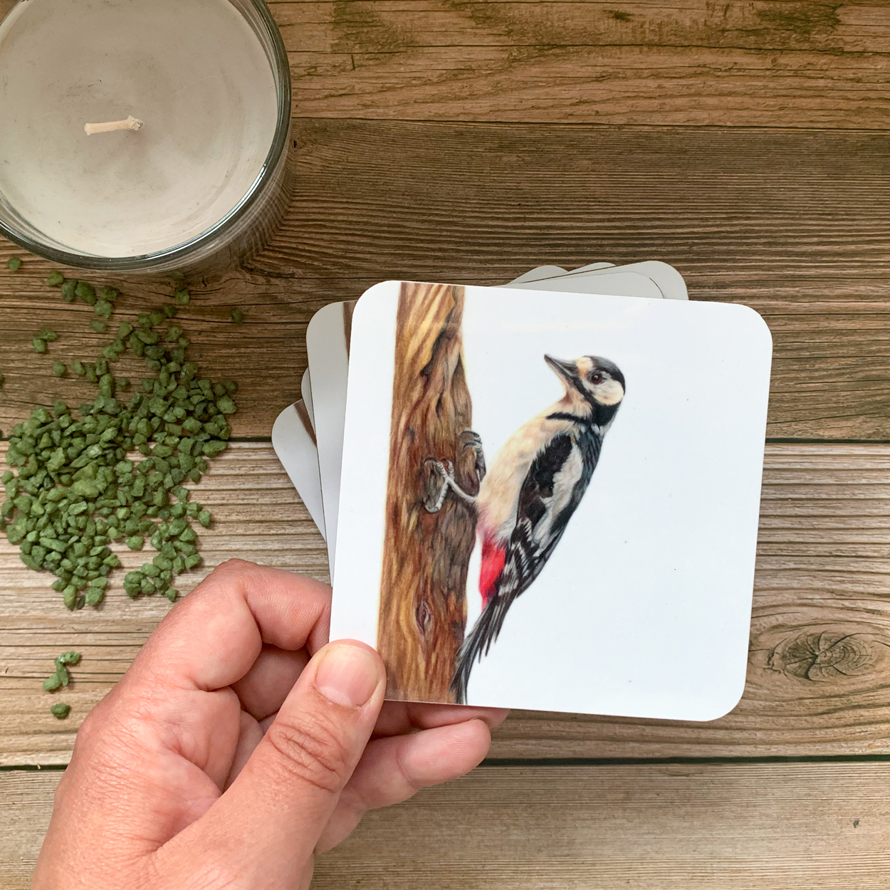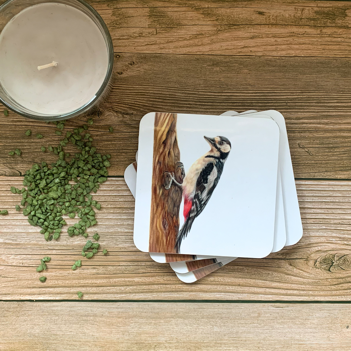 This beautiful, glossy coaster features Odin the woodpecker and will add a touch of country feel to your home.