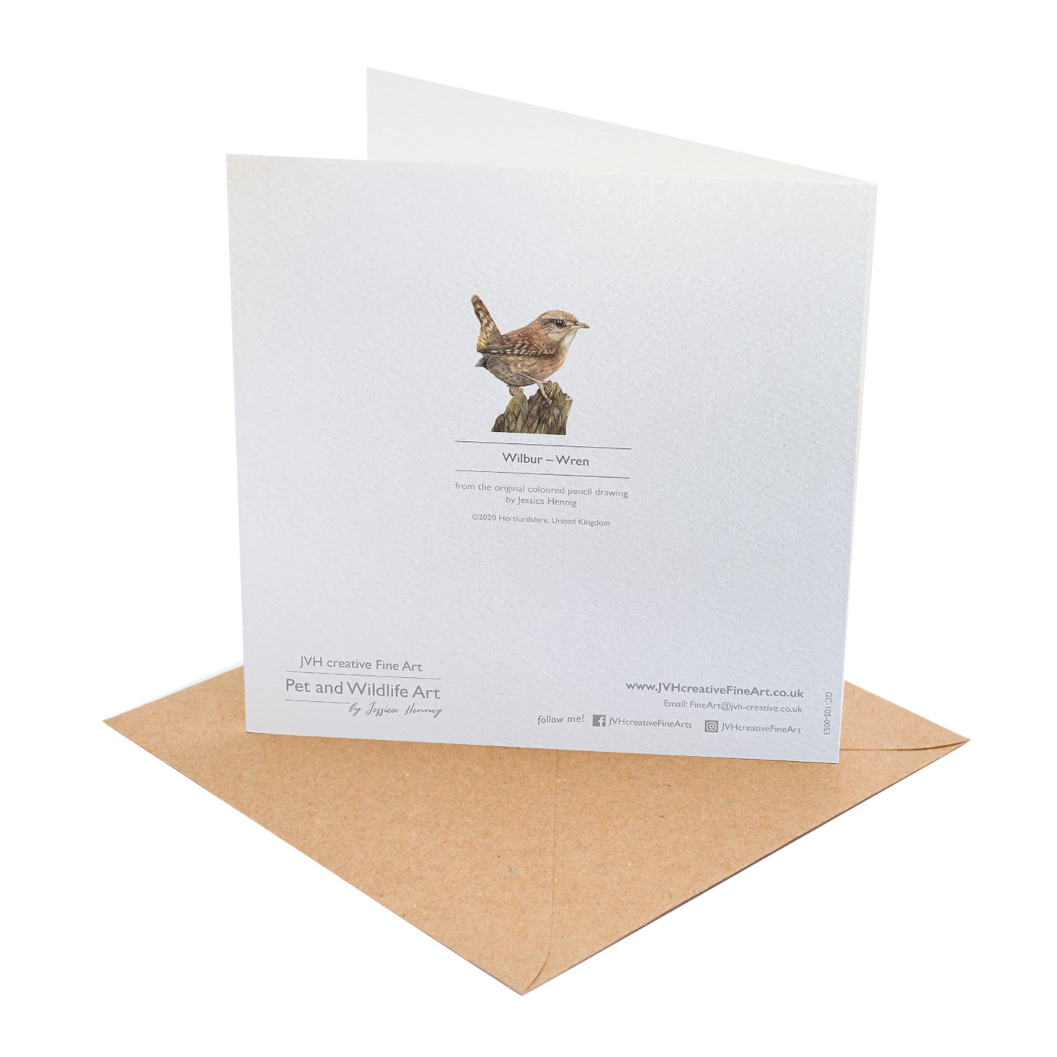 This is Wilbur the little Wren, featured on one of our quality, stuctured paper, Greeting Cards. The drawing is part of the British Bird, Wildlife Collection and makes a great gift for all bird and nature lovers.